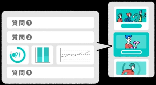 エンゲージメントサーベイとは別に、貴社独自のサーベイを作成・配信可能。 回答対象者の絞り込みや配信タイミングも自由自在に可能です。
