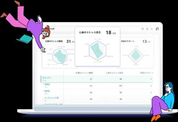 組織で働く方々のストレスの早期発見、離職や休職の未然防止を目的にエンゲージメントサーベイと併せてご活用いただくことで、組織のパフォーマンス向上に貢献します。