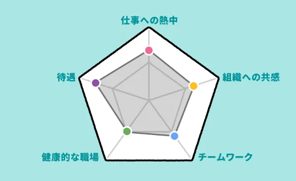 業界と会社の規模を選択すると、該当する企業群での『偏差値』が5つの項目で確認できます。業界他社の差分を理解することができ、自社の強み・改善のヒントに役立てることができます。