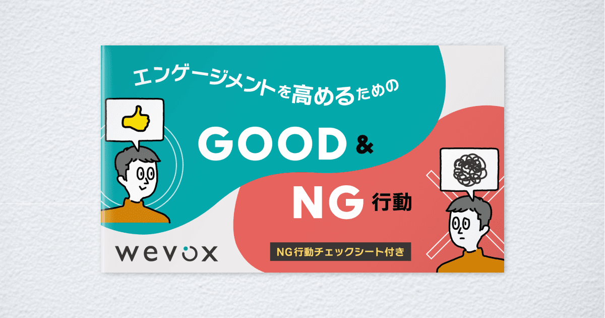 多くの企業が抱える課題、従業員のエンゲージメントの低下。 本資料では、職場の活性化や社員の意識改革を実現するために、エンゲージメントを高める「Good & NG行動」を具体例とともに整理しました。 セルフチェックリスト付きで、行動改善をすぐに実践可能。 エンゲージメント向上の第一歩を、この資料で始めましょう!