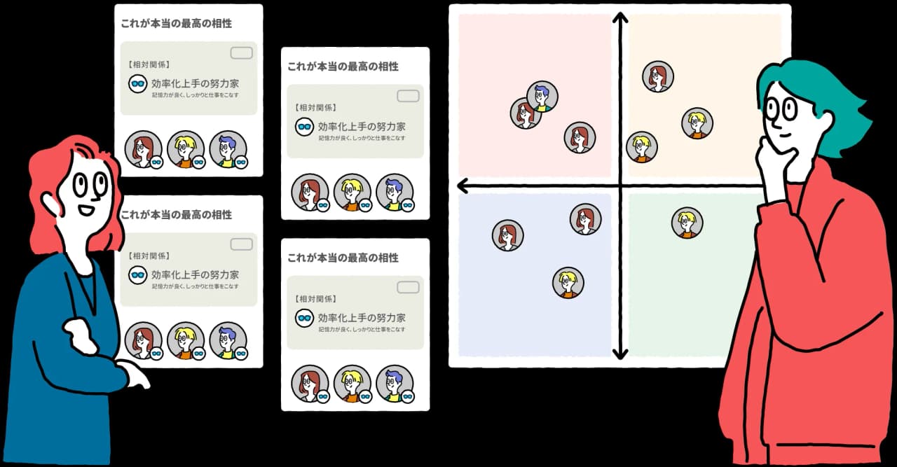 また、特性をもとにお互いの「相性」を理解することで、チームビルディングを加速させます。