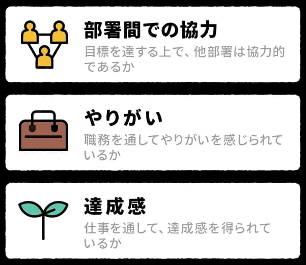 エンゲージメントサーベイに比べ、より個人の内面に向けた質問に答えてもらうことで、本人の特性を診断します。
