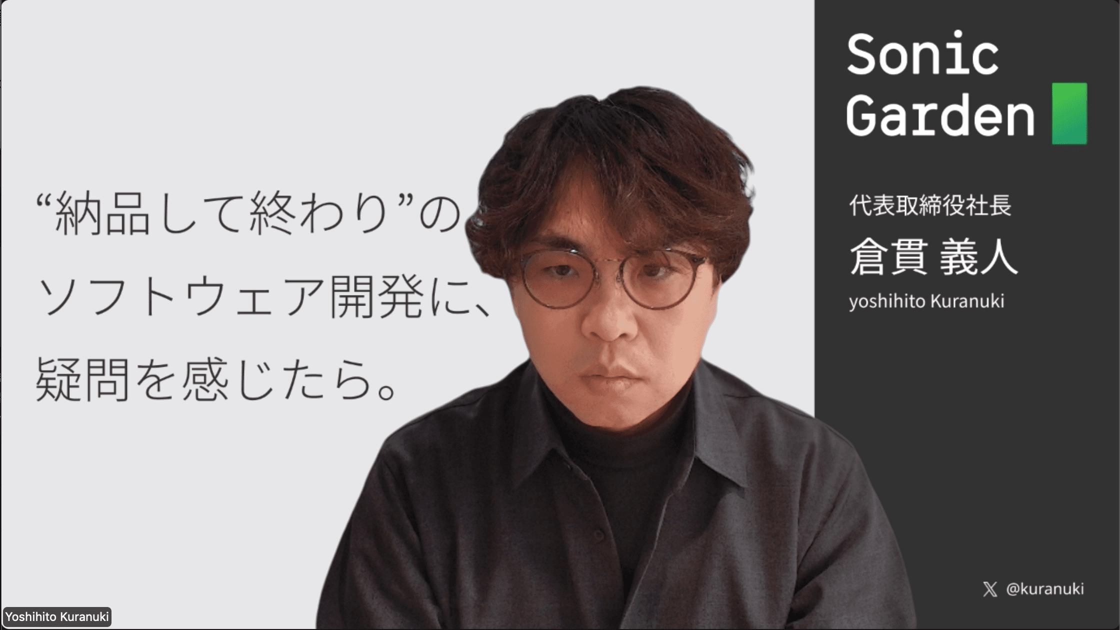 大手SIerで立ち上げた社内ベンチャーをMBOし、2011年にソニックガーデンを設立。月額定額でプログラマが顧問のように寄り添う「納品のない受託開発」を展開しつつ、本社オフィスの撤廃、管理のない経営、若手育成のための徒弟制度など新しい経営と働き方を実践している。2018年に株式会社クラシコムの社外取締役、2024年から取締役CTOに就任。著書に『人が増えても速くならない』『「納品」をなくせばうまくいく』など。 ブログ https://kuranuki.sonicgarden.jp/blog/