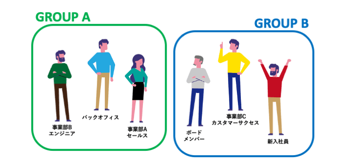 リモートワークでは、同じチームの人とは業務上のコミュニケーションをとりますが、オフィスでたまたま会って雑談していた他チームの人との会話は一気に減ります。オンライン全社会議では、グループ分けを工夫しましょう。所属チームが被らないようなメンバー構成にすることで、チームを跨いだ横串のコミュニケーションの活性化に繋がります。