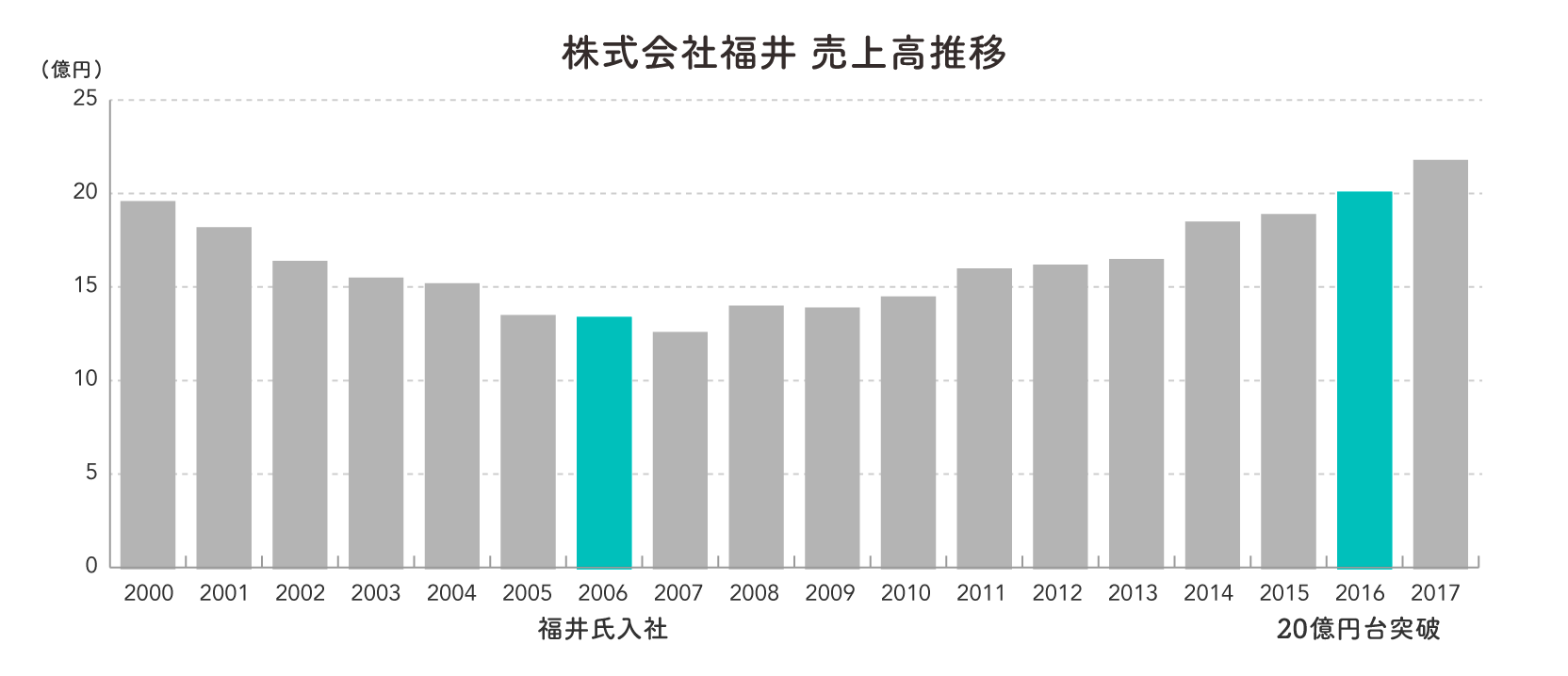 福井:業績面で、非常に厳しい状況でした。このグラフを見れば分かるのですが、2000年に入って前半の業績が低迷を続けています。私が入社した2006年が、業績が一番悪いです。ですので、まずは事業の回復に専念するために、自ら得意先を持って、営業活動を行いました。そして、業績が上向きになった4年前ぐらいから、さらに業績を伸ばすために徐々に組織改革にも乗り出したのです。今は、自分では営業活動をしないで、管理業務に専念しています。