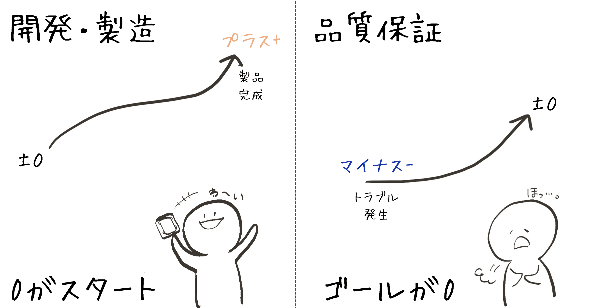 ただ、業務を整理しても、品質保証という仕事の特性は残ります。開発部なら「製品が完成した」という達成感がありますが、私たちの仕事はトラブルや事故の発生など、マイナスから始まりゼロに戻す作業が多いので、どうしても受け身になりやすく、だからこそやりがいを感じにくいという課題がありました。