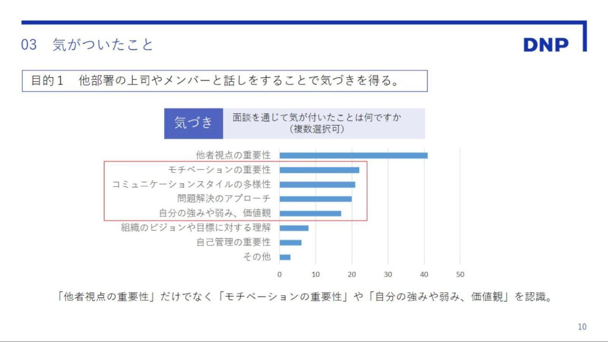 その中でも1on1ミーティング等は製造現場でも広がっていますし、効果実感は約6割という結果も出ています。今後はどんな職場でどんな活動をして効果があったかといった情報を共有し、そこに思いを寄せる人を育てていきたいと感じています。