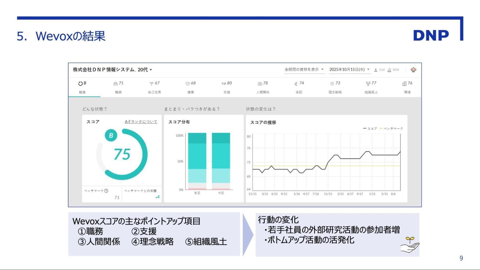 Wevoxのスコアでも人間関係や組織風土のポイントアップが見られました。