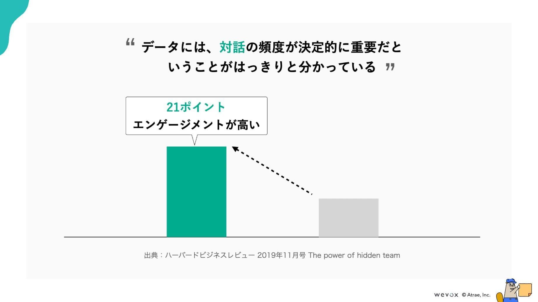 突然ですが、なぜ対話が大事なのか考えてみたいと思います。「対話をしてください」とよく言われますし、データでは対話の頻度が高いチームほどエンゲージメントが高いと言われますが、それはなぜなのか。今回、私なりの答えを持ってきました。