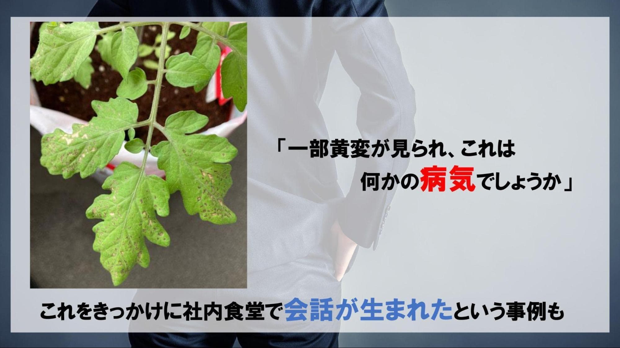 直近のワークショップでは「最高の休日の過ごし方」や「結局会社は思うように動かない?」などのテーマについて対話を行いました。一方、意識高い系が参加する場所と思われがちな側面もあり、私たちが行動変容人材として定義している“学ぶ、つながる、行動する”に立ち返り、その中で「つながる」に着目した活動として、カゴメ様と協創したトマト栽培を行いました。