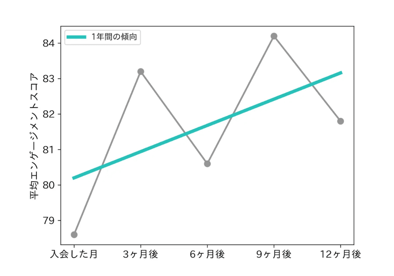 平井:Academyメンバー自身のエンゲージメントが年々高まっていると感じています。それは、実際に数値結果にも現れています。具体的には、入会初月の全体平均スコアが、12ヶ月後には約3点上昇し、さらにメンバーの中にはスコアが37点も上昇した方もいらっしゃいました。(参考:プレスリリース)