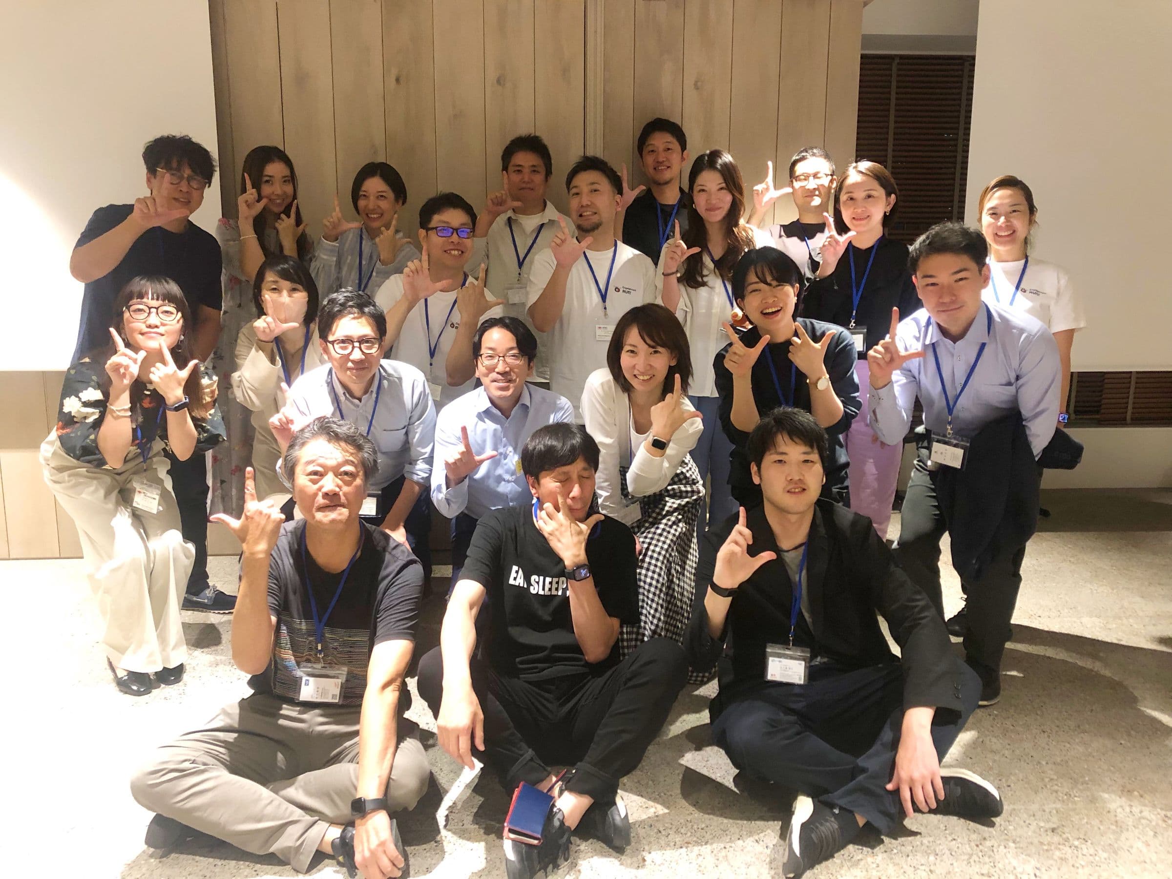 記念に集合写真を撮影! レゴの「L」のポーズでパシャリ!その後も、参加者の皆さんで交流をしました。