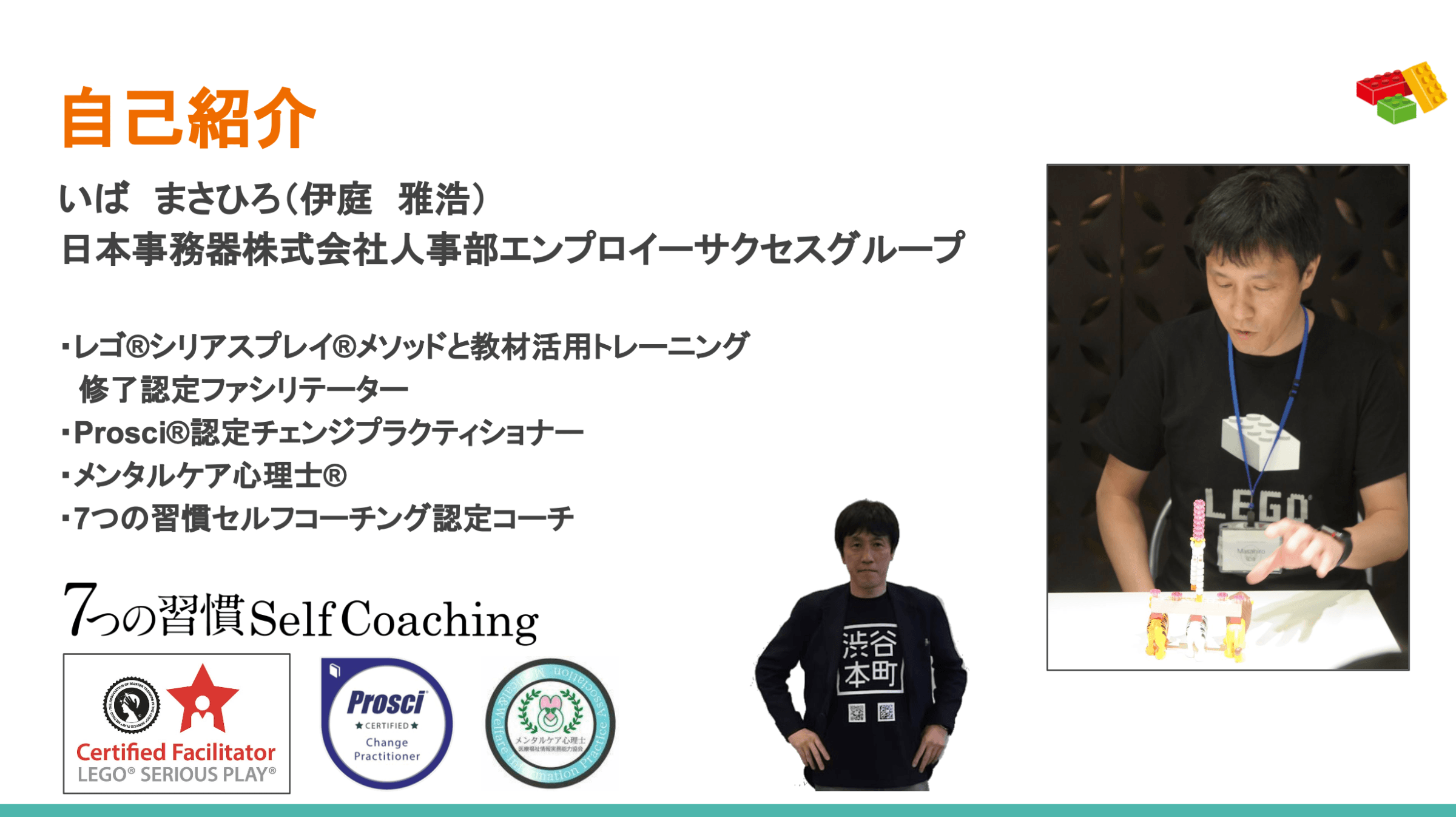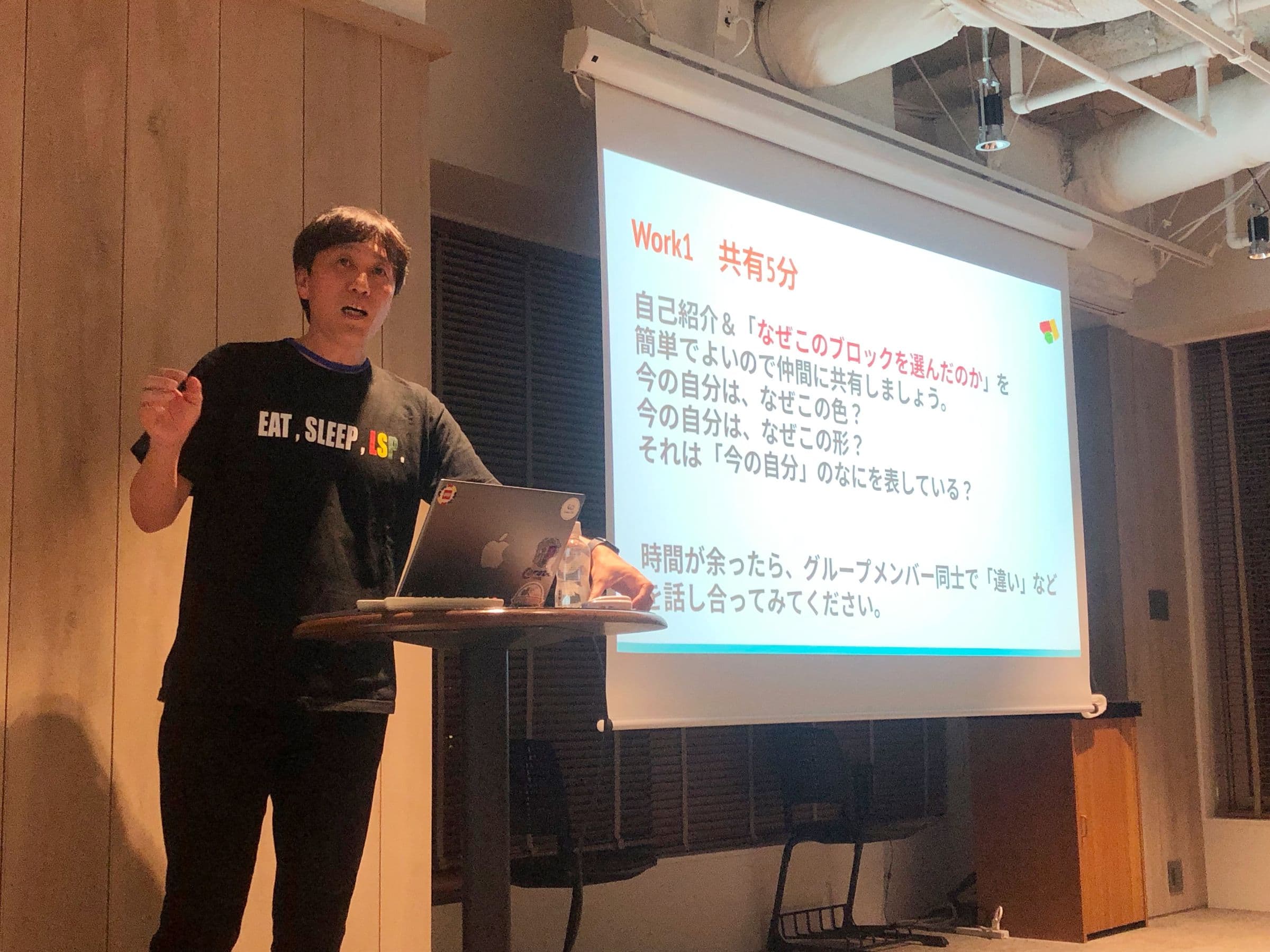 伊庭さんの自己紹介から始まり、ワークショップを開始。レゴ®シリアスプレイ®の概要・必要性・歴史についても教えていただきました。