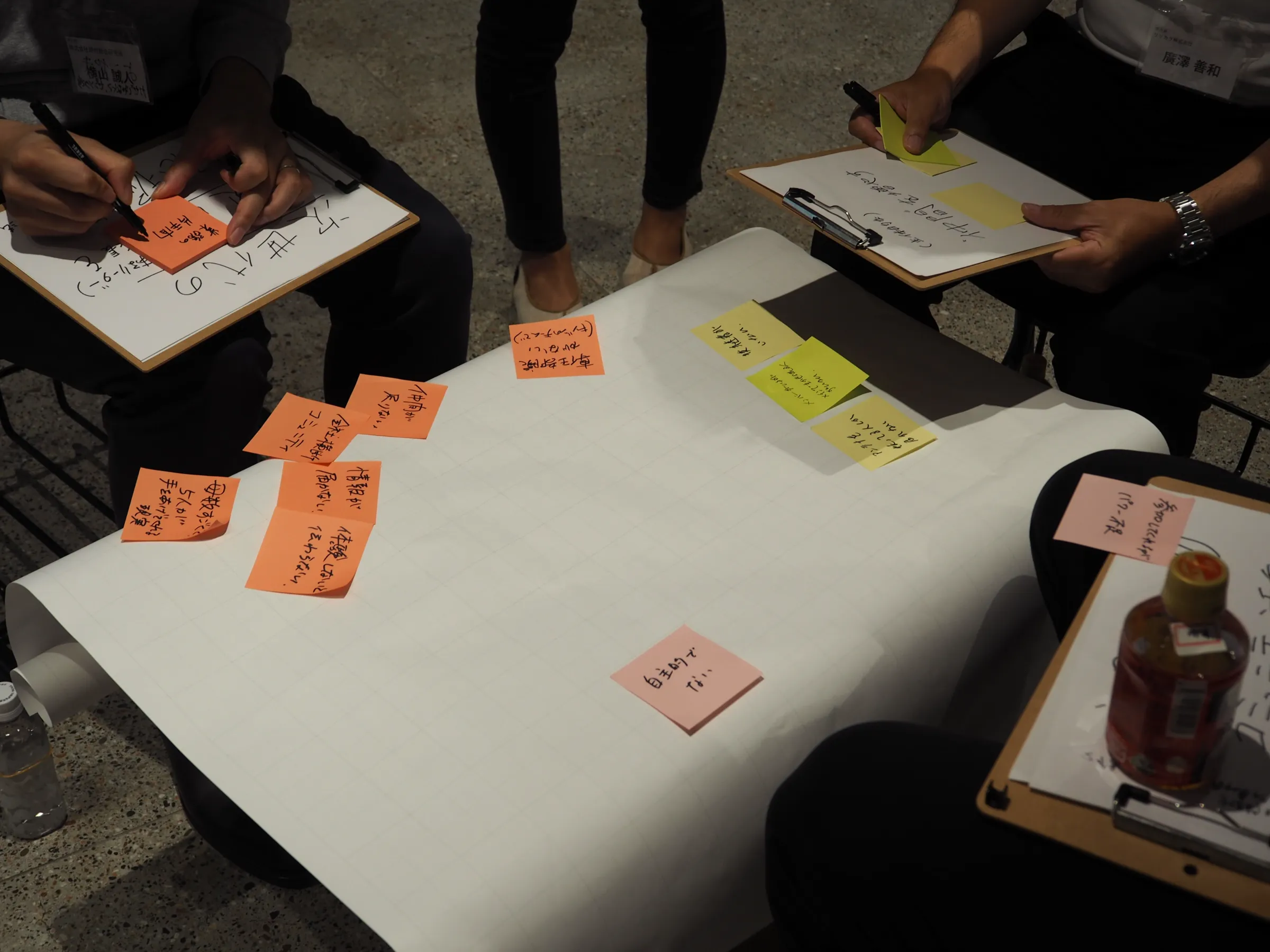 座りっぱなしではないワークは新鮮で新しい発見があった。また、同じ課題感やテーマをもっている方との自主性あるチーム組成はとても良い企画だと感じた。社内企画でも参考にしたいと思います。