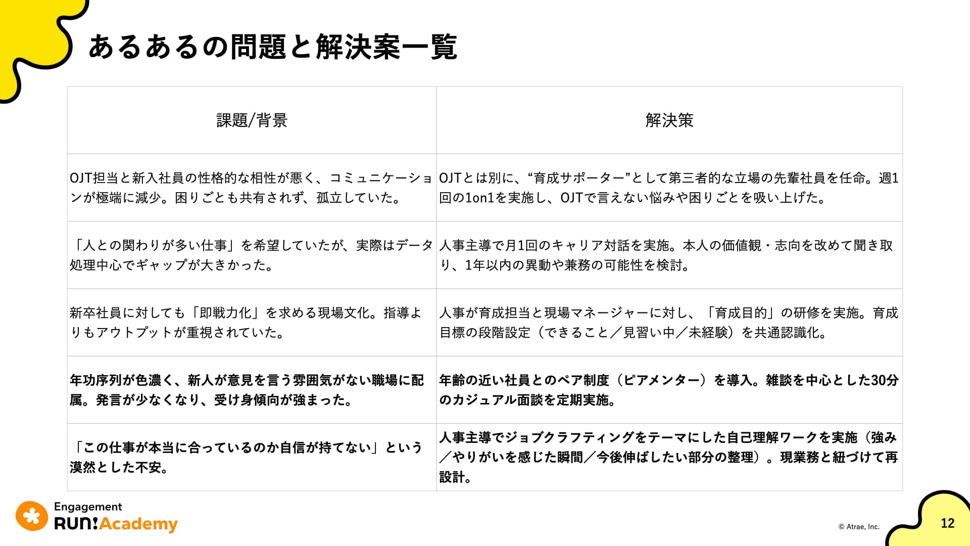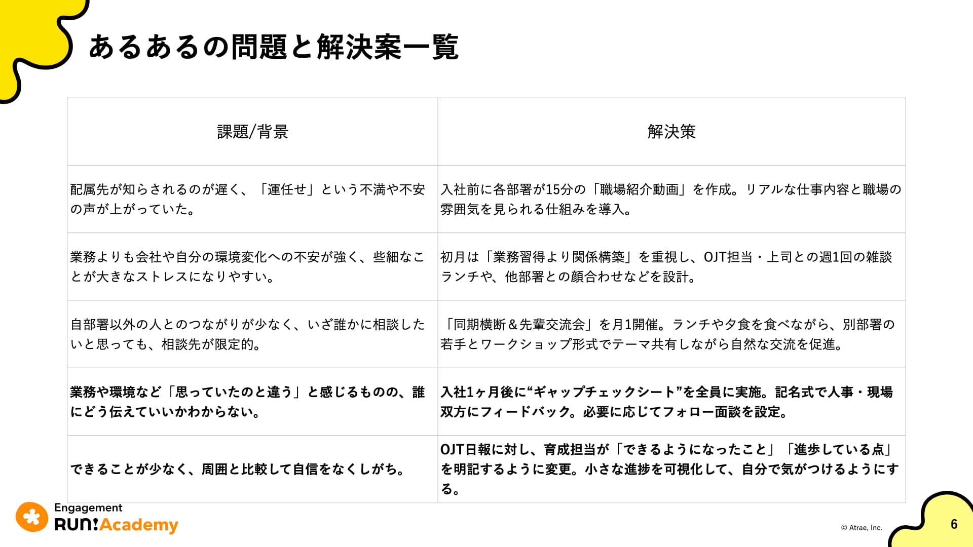 例として以下の問題と、それに対する解決策を挙げました。