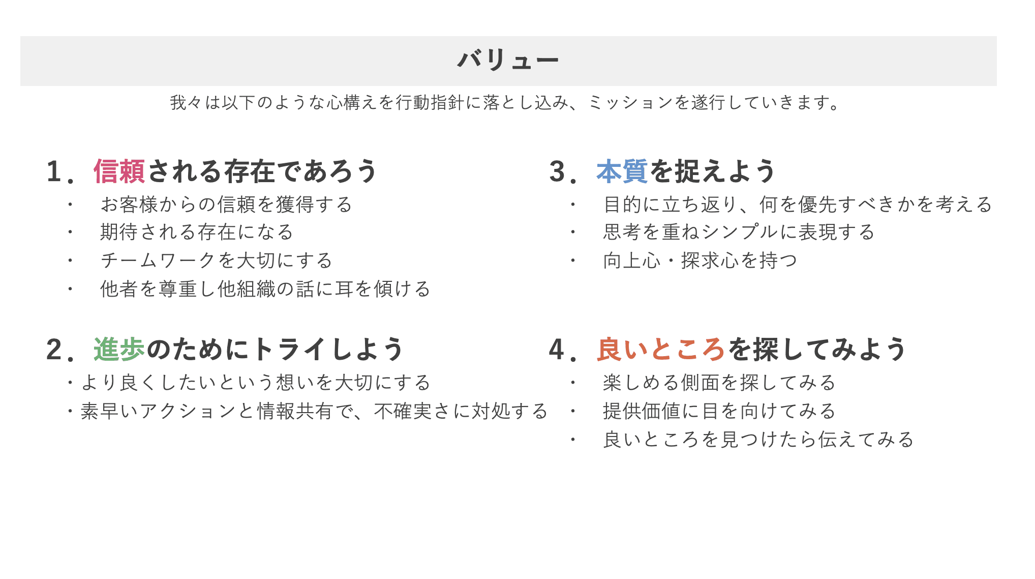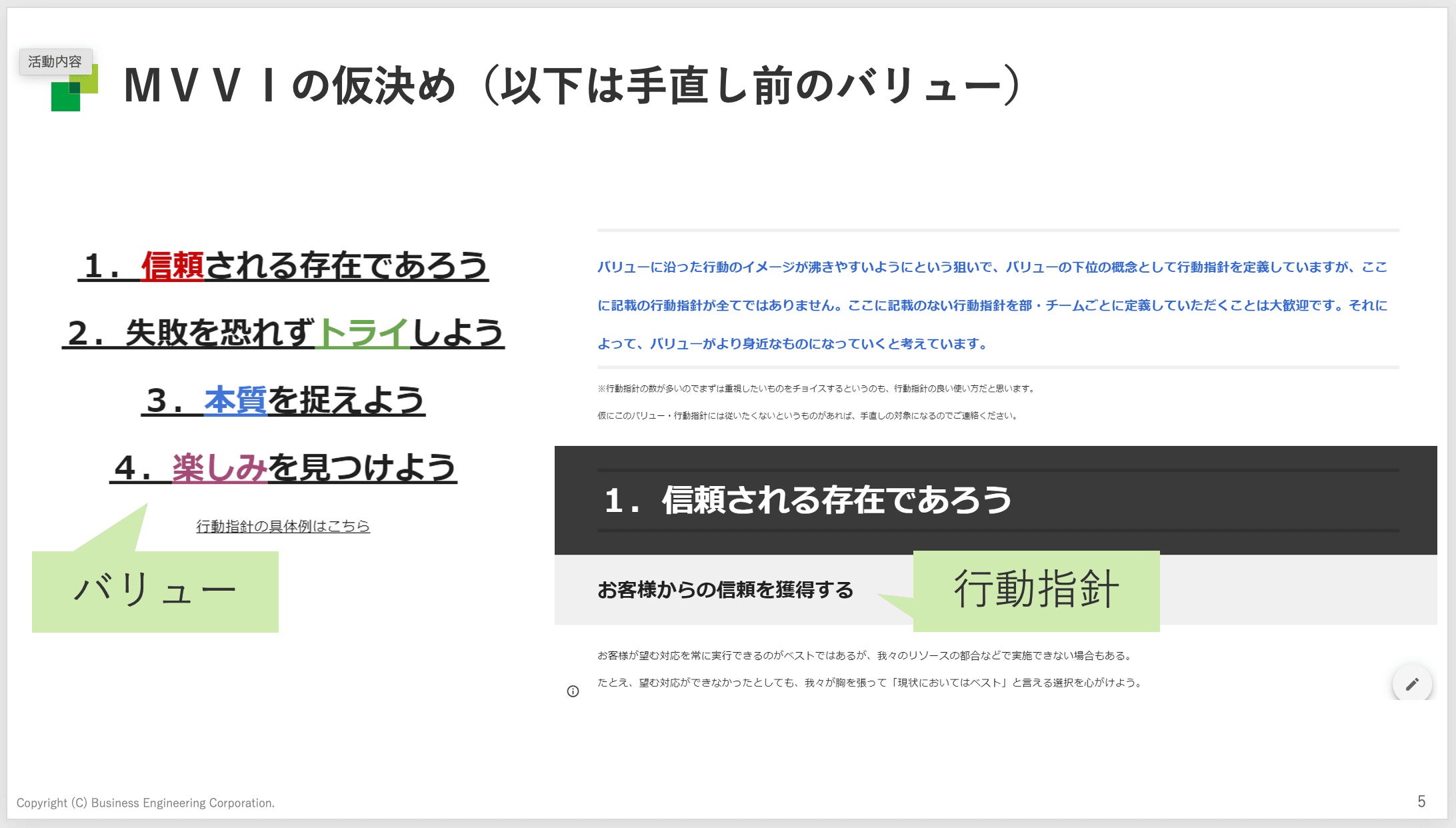 別役:最終的にまとまったMVVIのうち、バリューは以下になります。