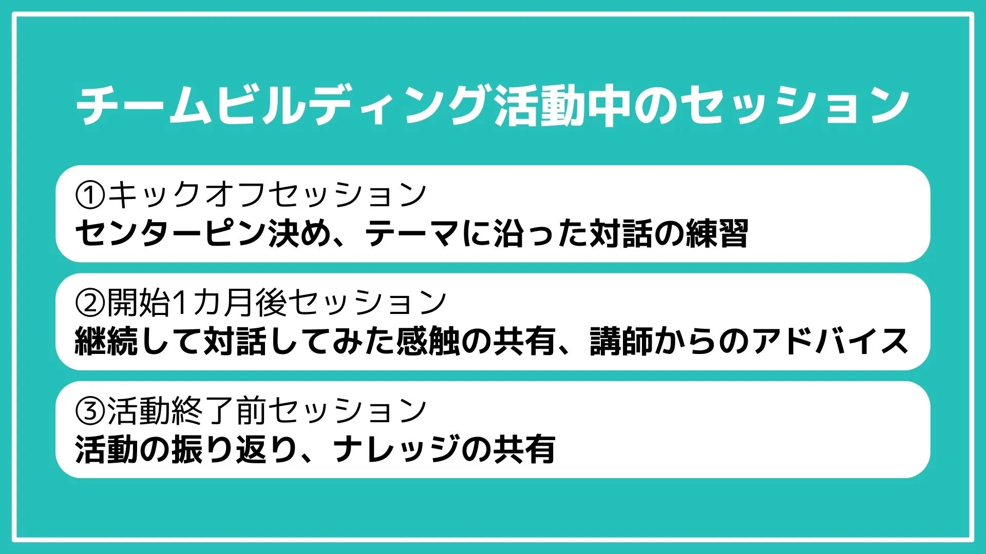 活動中に様々な方法での対話によりチーム運営が円滑に進んでいくのを参加者が体感し、最終的に自分たちが働きやすいチームになっていくことを狙いとしました。加えて、チームビルディングに関するナレッジを得ることも出来ますし、取り組みによってチームにポジティブな効果があったことが、経験者の声として社内に広がっていくことも期待しました。
