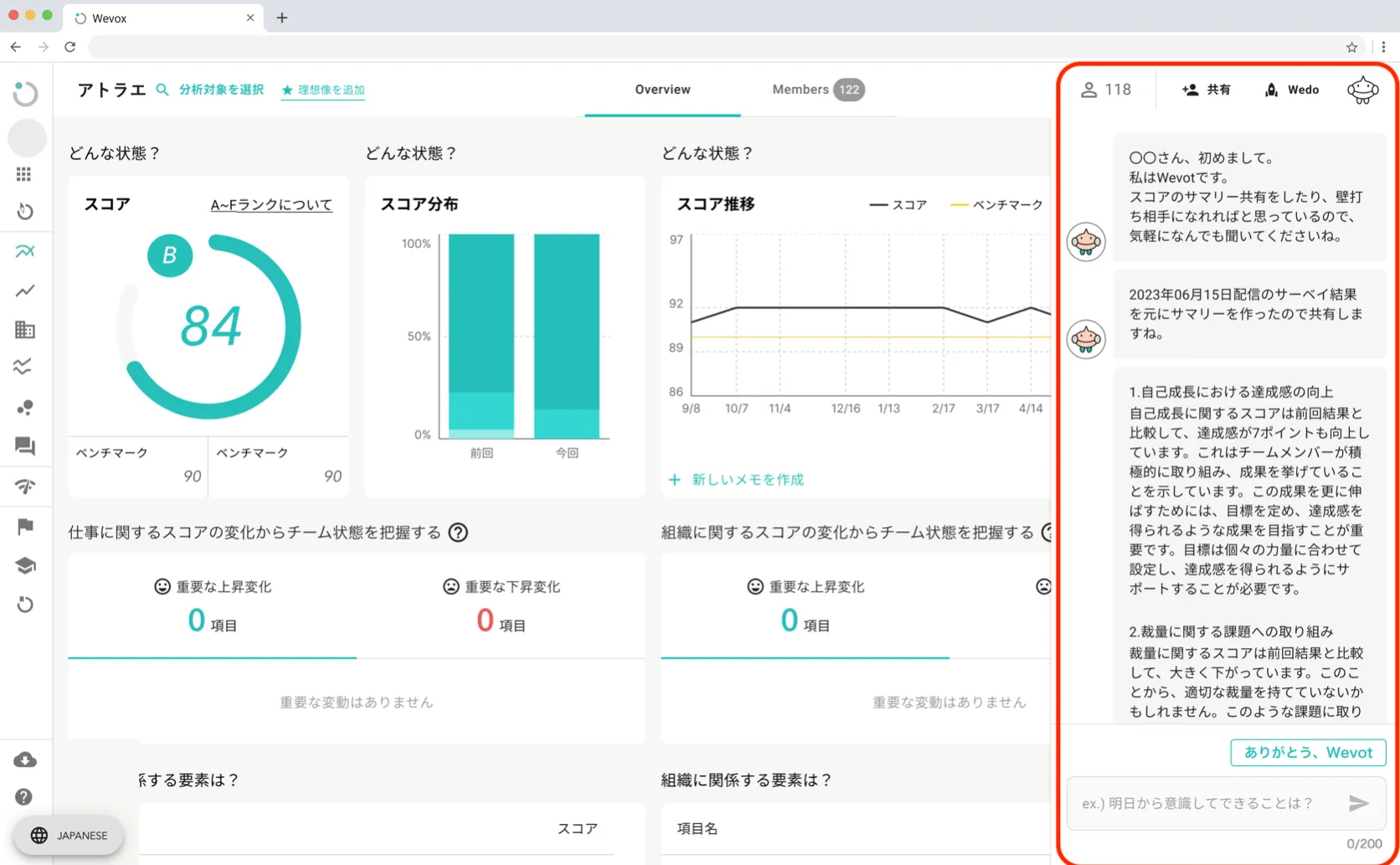 まだ各種サポートツールの活用が全部課店に浸透しているとは言えない状況ではありますが、いくつかの店舗からは、サーベイ結果について「これってどういうこと?」「こういうことってWevotに聞くと教えてくれたりする?」といった問い合わせが来ていて、コミュニケーションの改善に活用しようとする動きがうかがえます。