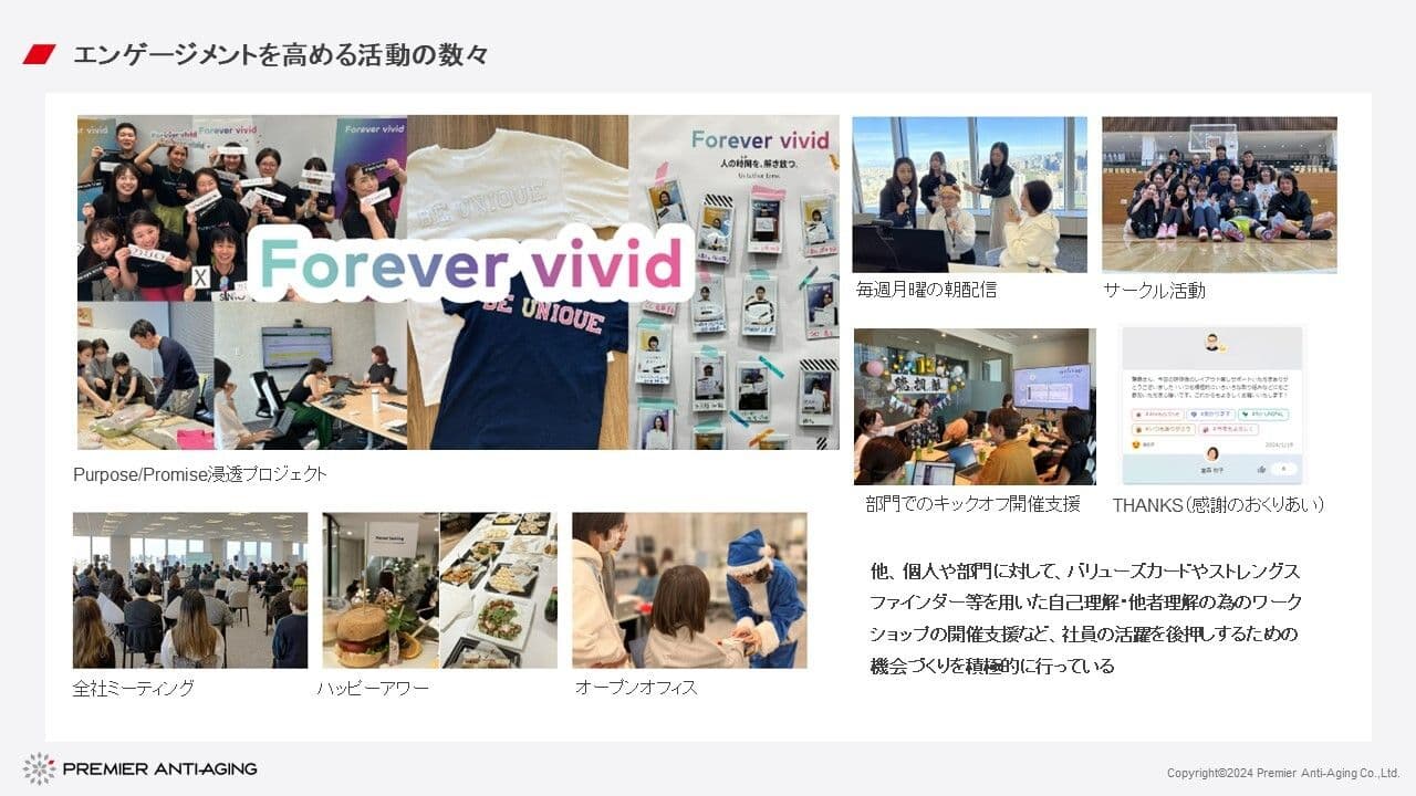 企業理念にある「Forever vivid〜人の時間を、解き放つ〜」には、「Uniqueな価値」の提供を通して、すべての人が好奇心を持って何歳になっても新たなことにチャレンジし、いきいきと生きることができる社会を実現したいという思いが込められています。私たちらしくあるためには、人と情報を丁寧に繋ぎ、社内の一人ひとりがいきいきと働くことができる土台が大切と考え、社員エンゲージメントを意識した、様々なコミュニケーション活動が始まりました。