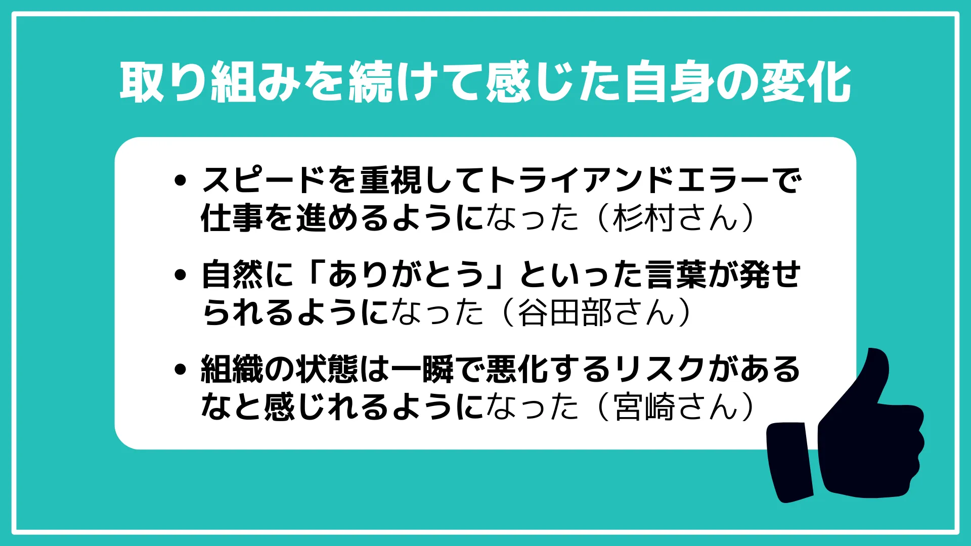 それぞれの部署のメンバー、そして推進者自身に起こった良い変化