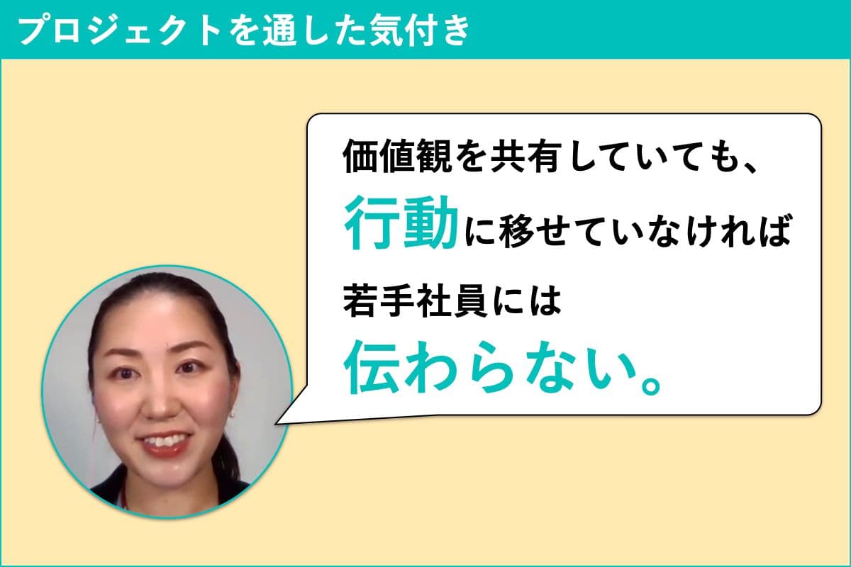ただ、そう思っていたとしても、それが行動に移せていなければ、特に若手社員には伝わりません。だからこそ、せっかくあるその大切にしたい価値観を、もっと表現したり、普段の活動の中で生かして機能させていきたいと思うようになりました。