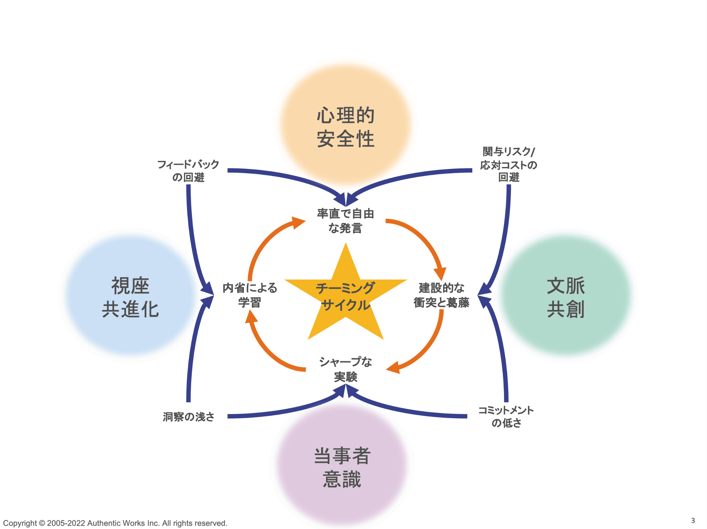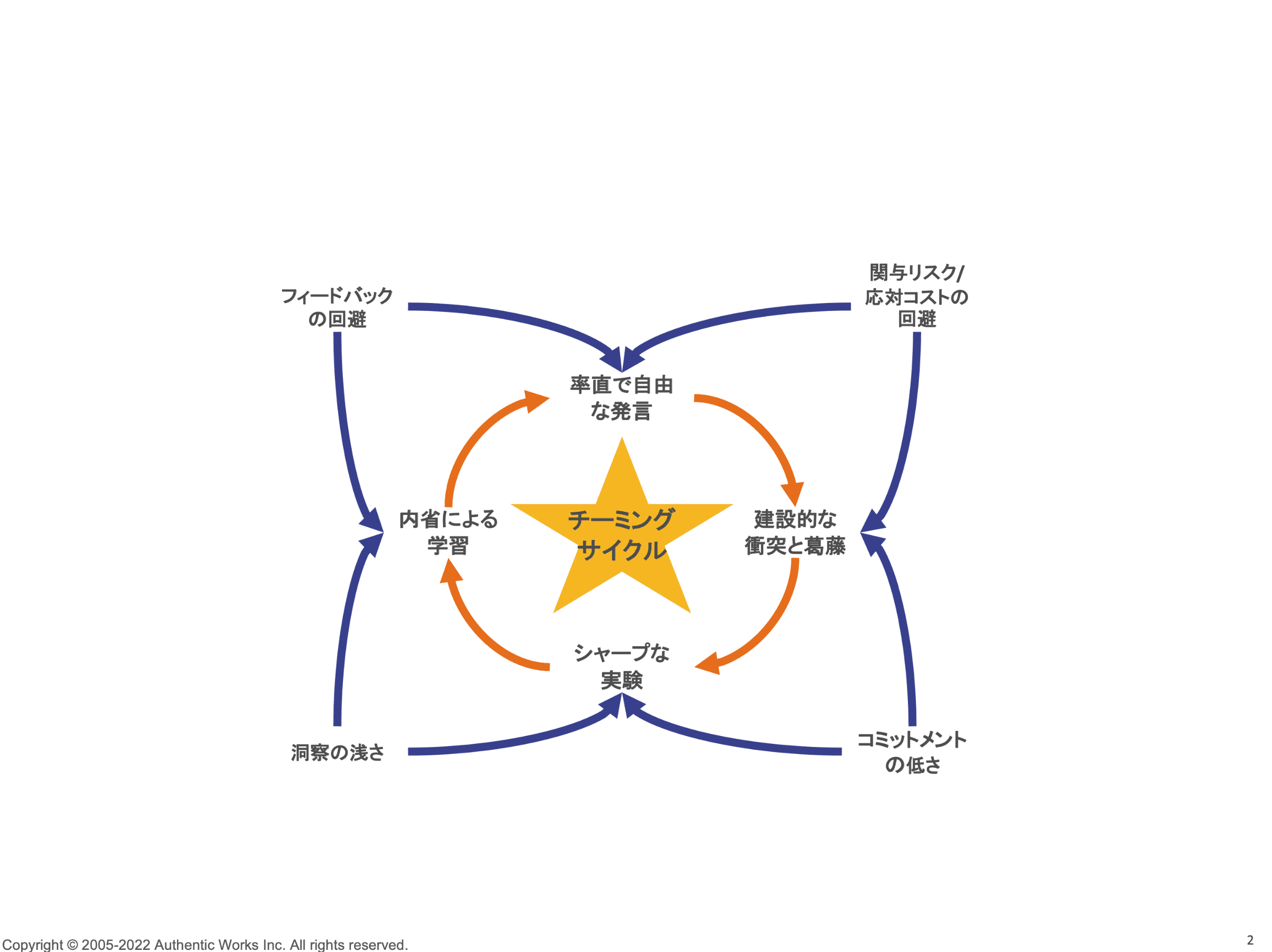 ―それぞれが複合的に絡み合って、チーミングサイクルを阻害しているんですね。どうすれば、こうした阻害要因を取り除けるのでしょうか?
