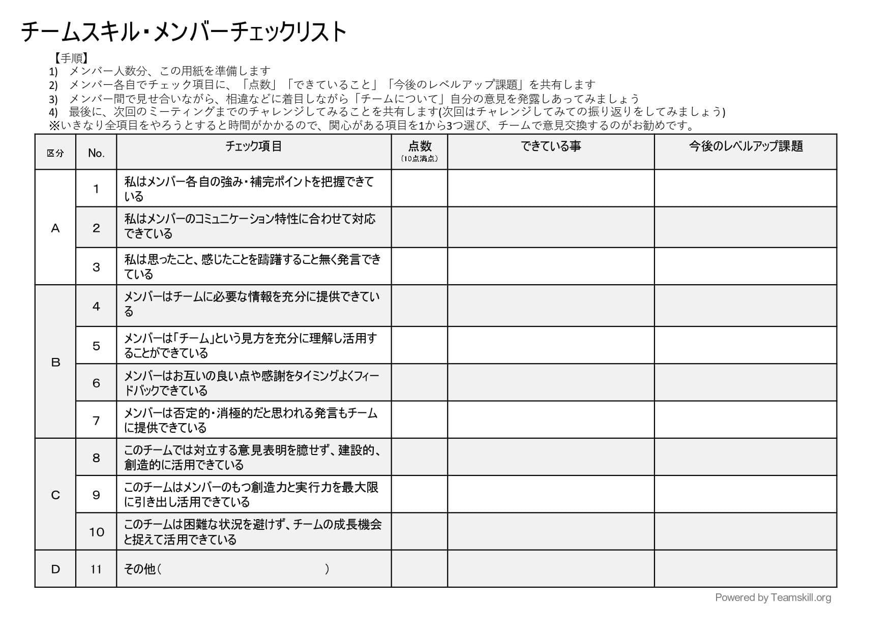 ここでは代表的な対話ツールとして、「チームスキル・メンバーチェックリスト」をご紹介します。