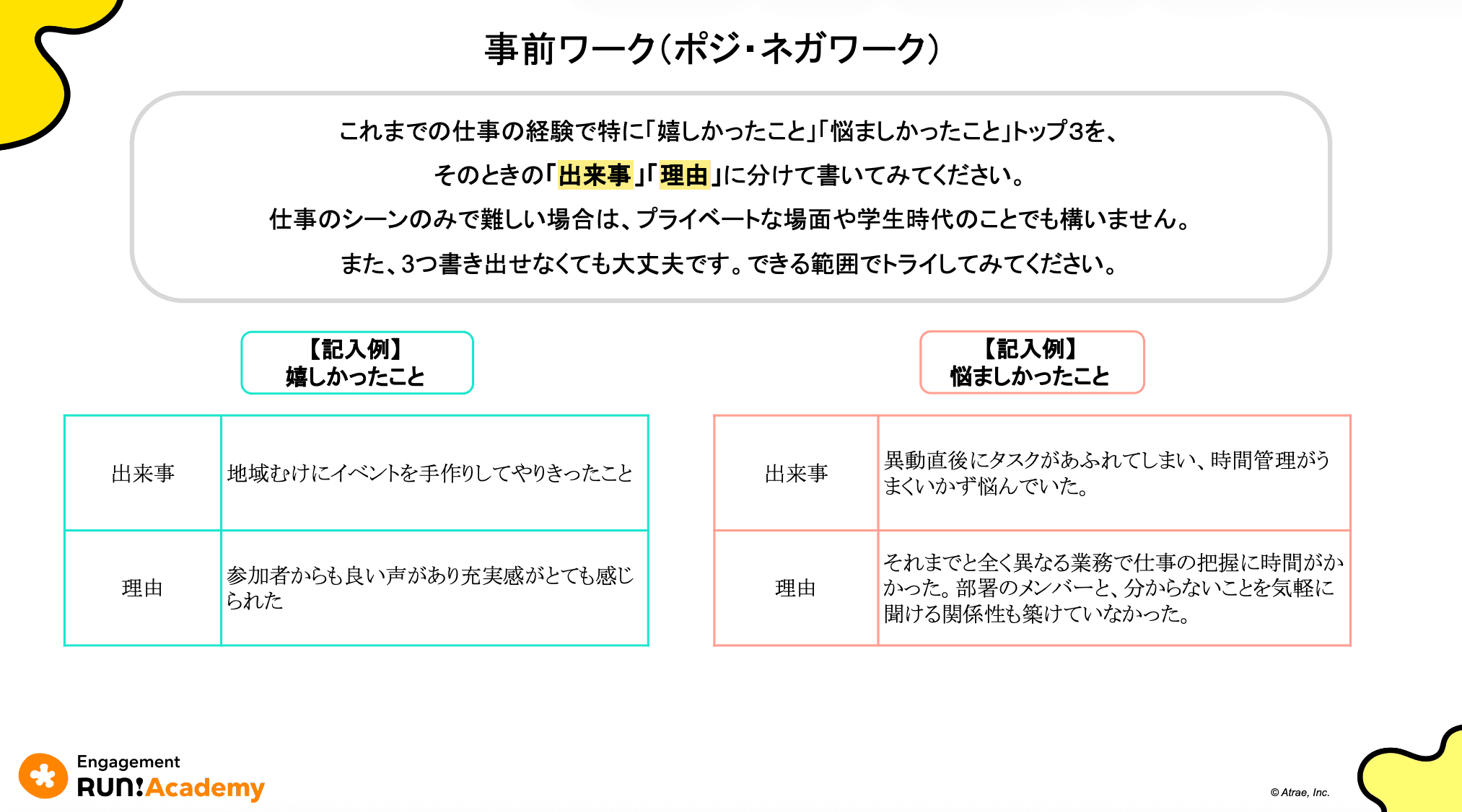 今回のワークは事前課題として「ポジ・ネガワーク」を実施いただきました。