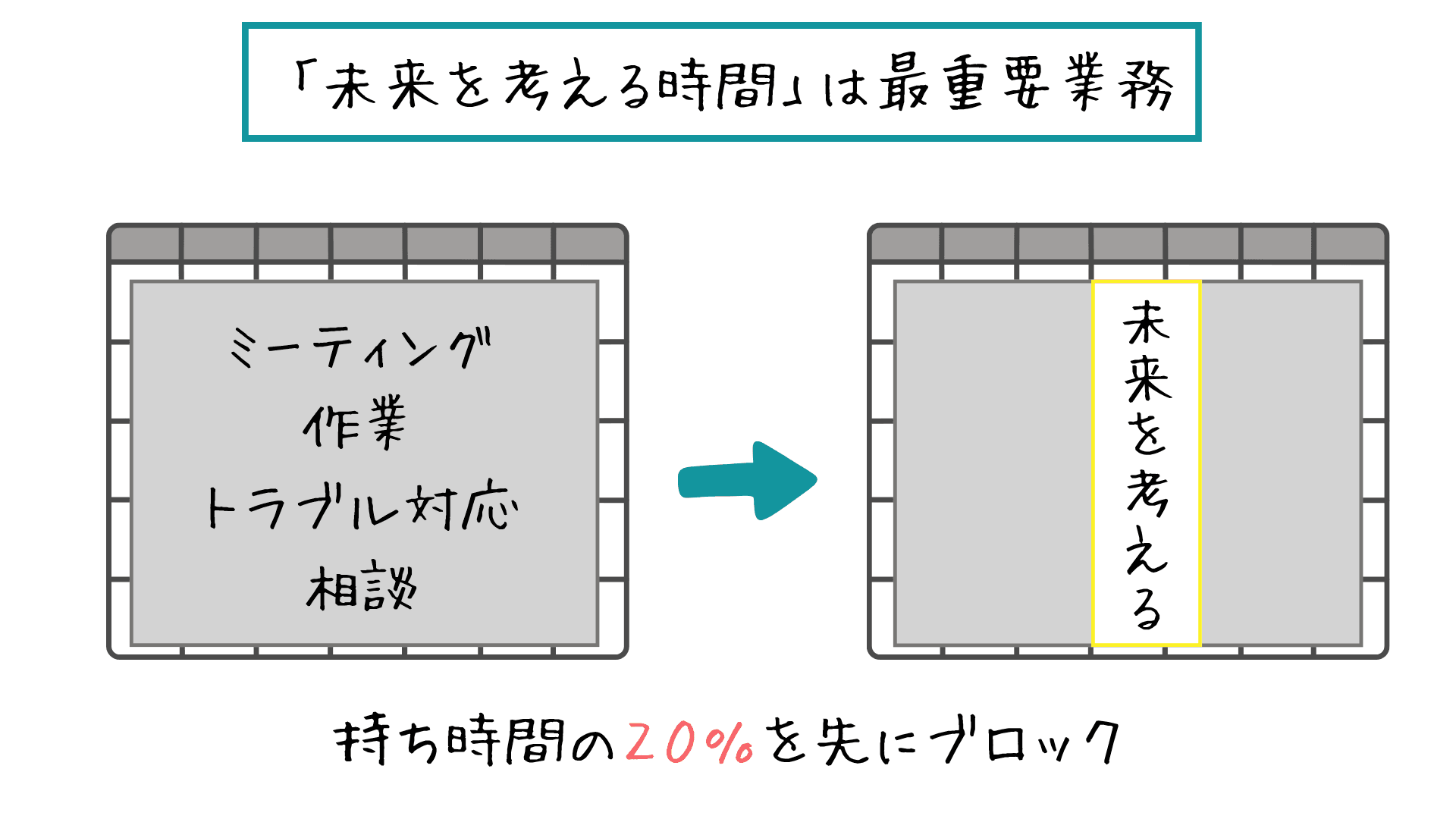 自分の持ち時間の一定時間を、未来を考える時間として先にブロックしてください。
