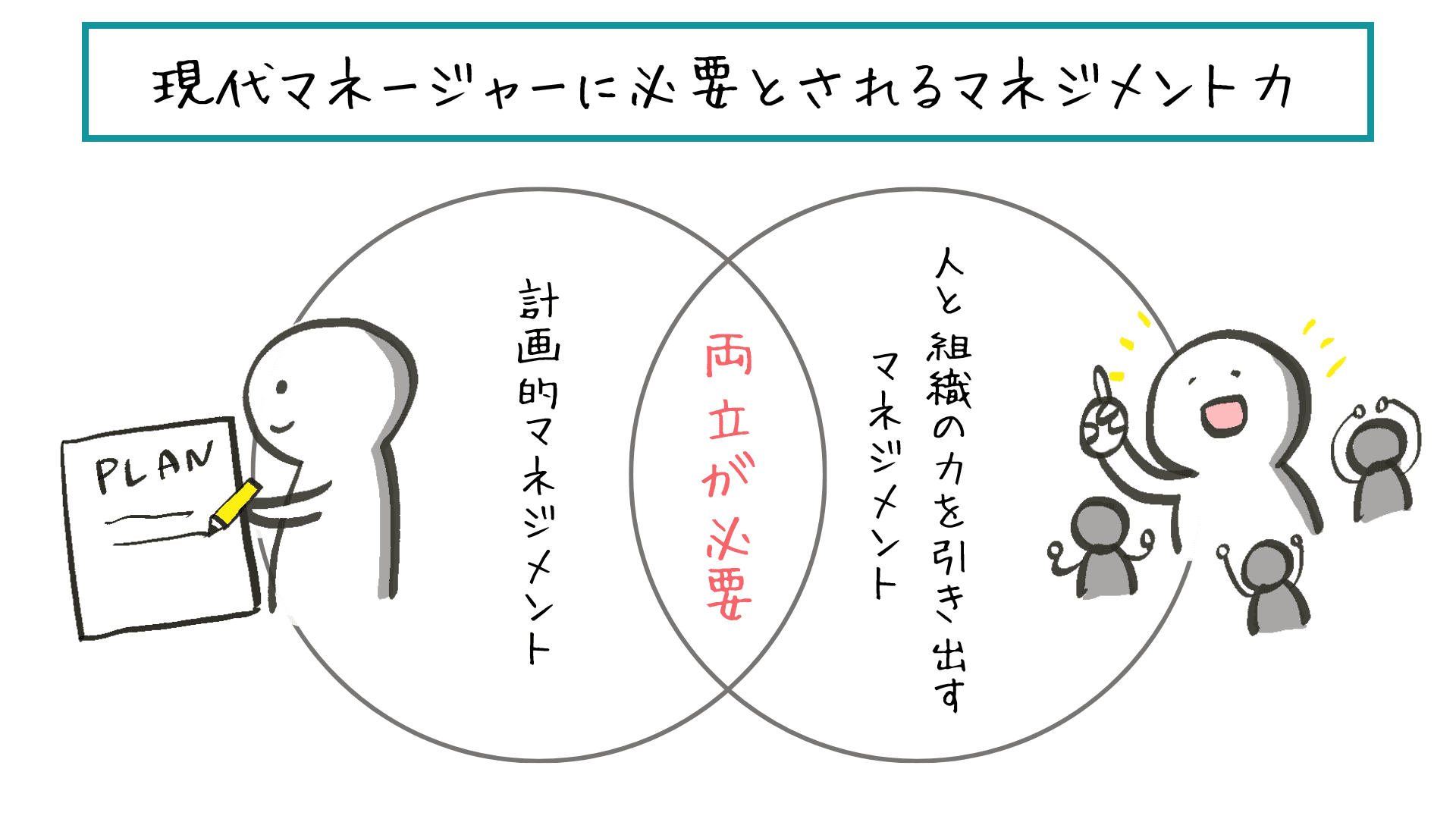 つまりこれからのマネジメント環境においては、従来の結果を出すための「計画的なマネジメント」と環境変化に対応するための「人と組織の力を引き出すマネジメント」。この二軸をどう両立させるかが、現代のマネージャーに課された大きなテーマなのです。