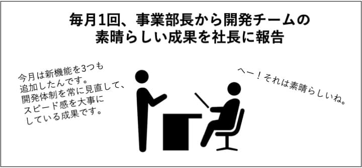 Step1:毎月社長へ各事業部長が開発チームの成果を報告する
