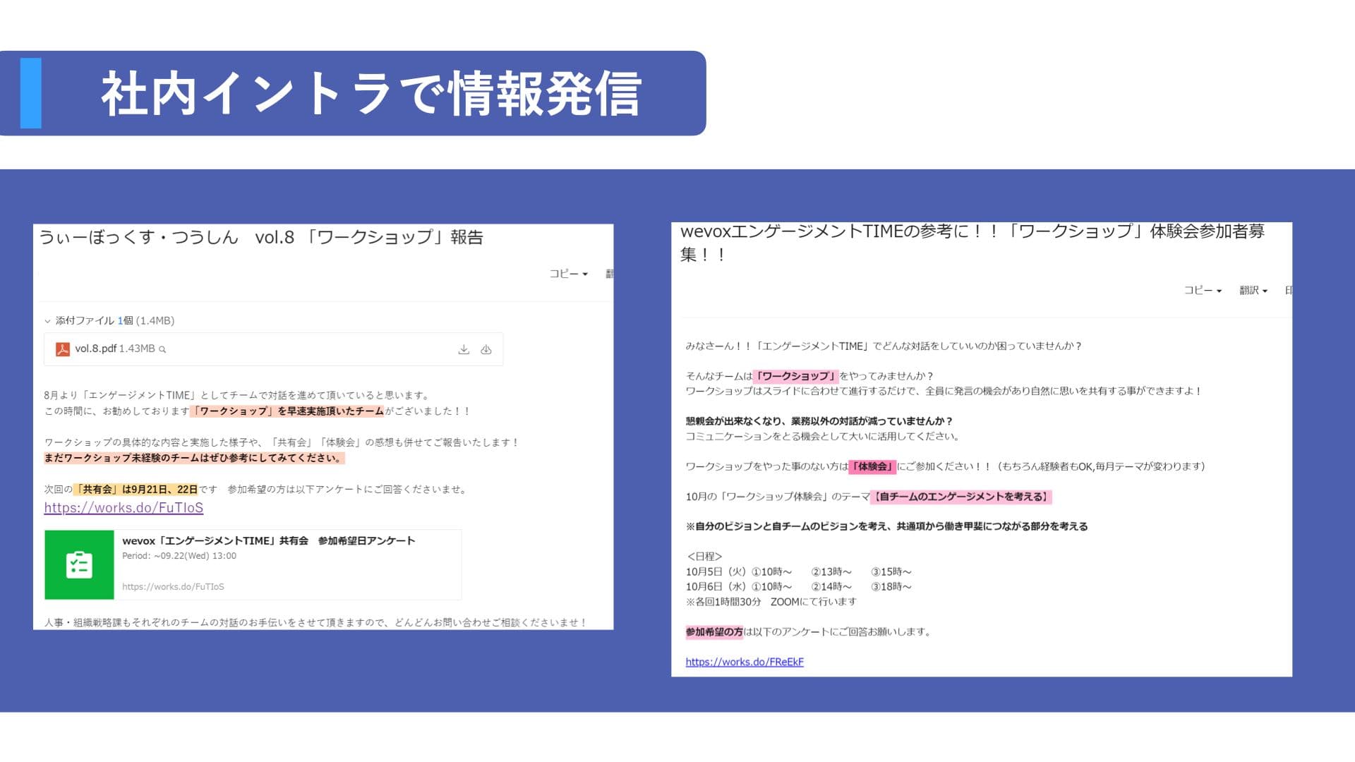 中村:ちょうど今年の5月に組織改編で新体制となり、もっとWevoxをちゃんとやっていこうと考えるようになりました。しかも、運営側がお話ししたような課題を感じていたところだったので、まずは我々がきちんと勉強してエンゲージメントに関する知識をつけようということになりました。
