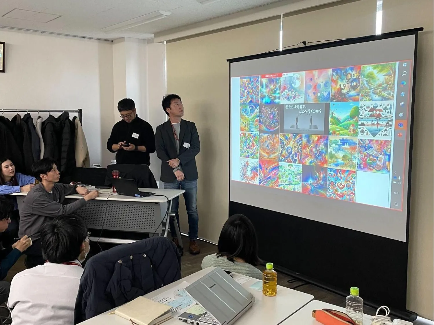 続いて、ワークで導き出されたキーワードをもとに生成AIを活用し、“自分の理想の未来像”をビジュアル化する体験を実施。言葉だけでは表現しきれないビジョンや感覚を、画像という新たな表現手段で描き出すことで、さらに自己理解が深まっていく時間となりました。