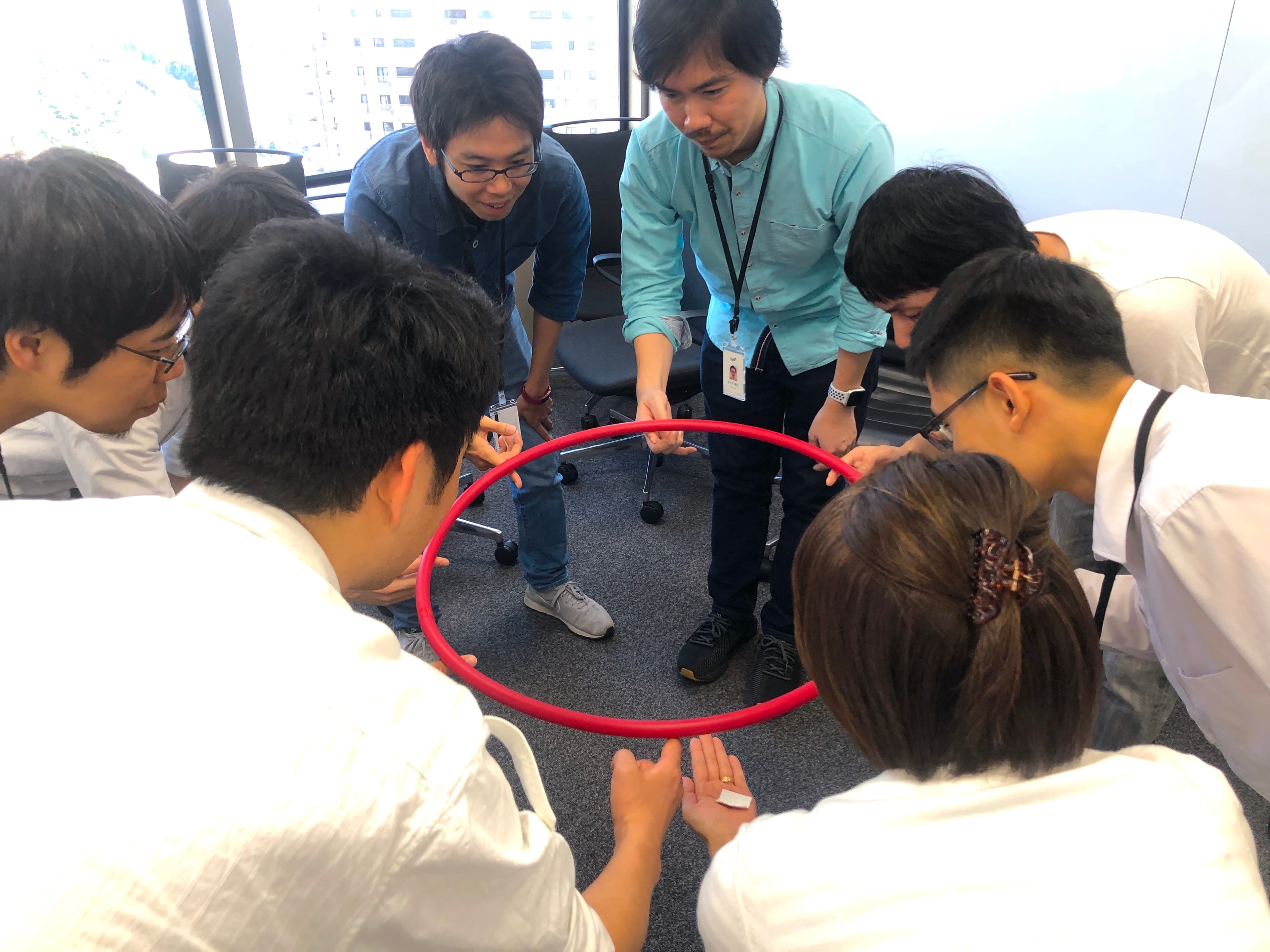僕の部署には、業務委託のメンバーが社員と同じくらいの数いるんです。色々なバックグラウンドを持ったスキルの高い人たちがたくさんいて。でもやっぱり社員と業務委託の壁と言いますか、やっぱりお互いものを言いづらかったり、遠慮してしまうじゃないですか。チームをもっと機能させるためには、この課題も乗り越えなくてはいけないなと思い、ヘリウムリングを使ったワークショップを行いました。