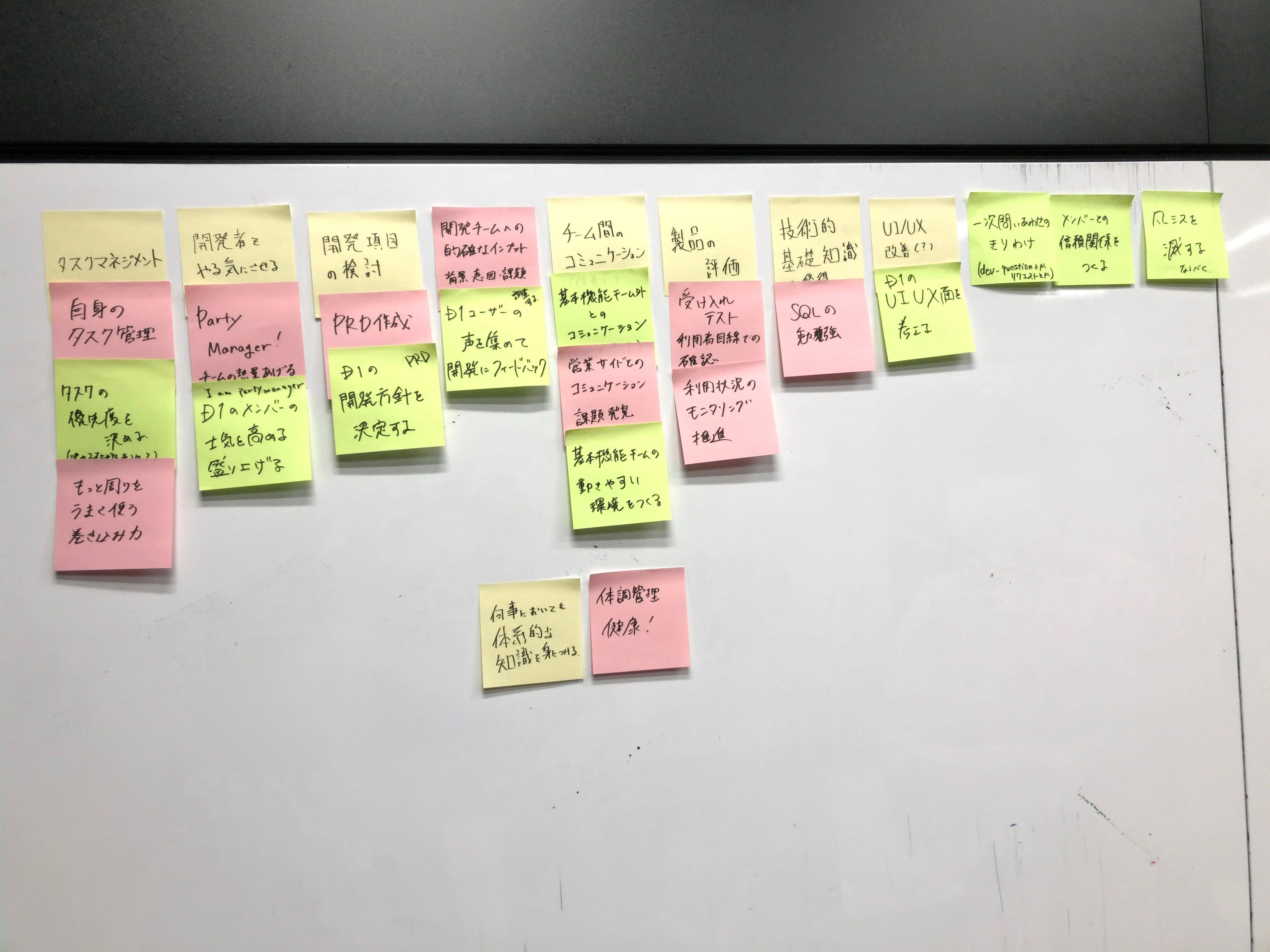 この写真の通り、僕がメンバーに期待していること、部下が自身のやるべきことと思っていることを、ポストイットを使って優先順位をつけて並べるというワークをやったんです。このワークを通じて、お互いの期待値をすり合わせることが目的です。