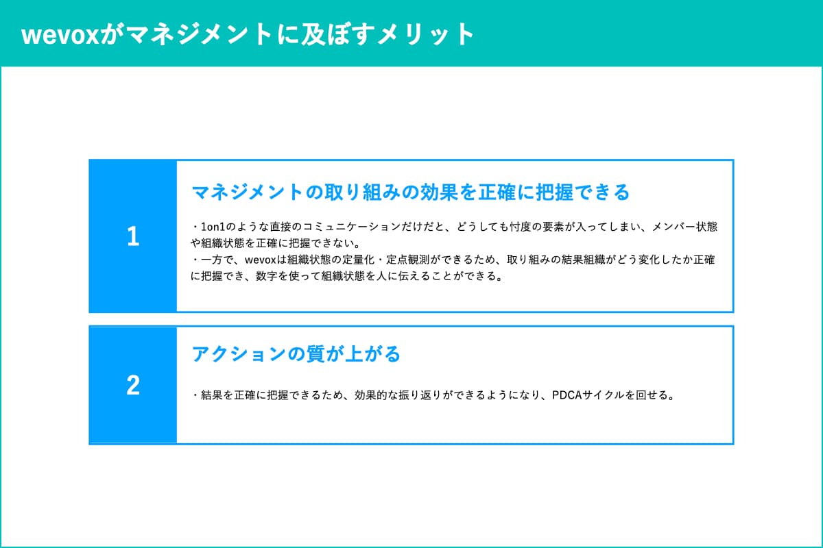 wevoxがマネジメントに及ぼすメリット: 反応を数字で見ることでメンバーの状態を正確に把握できるように