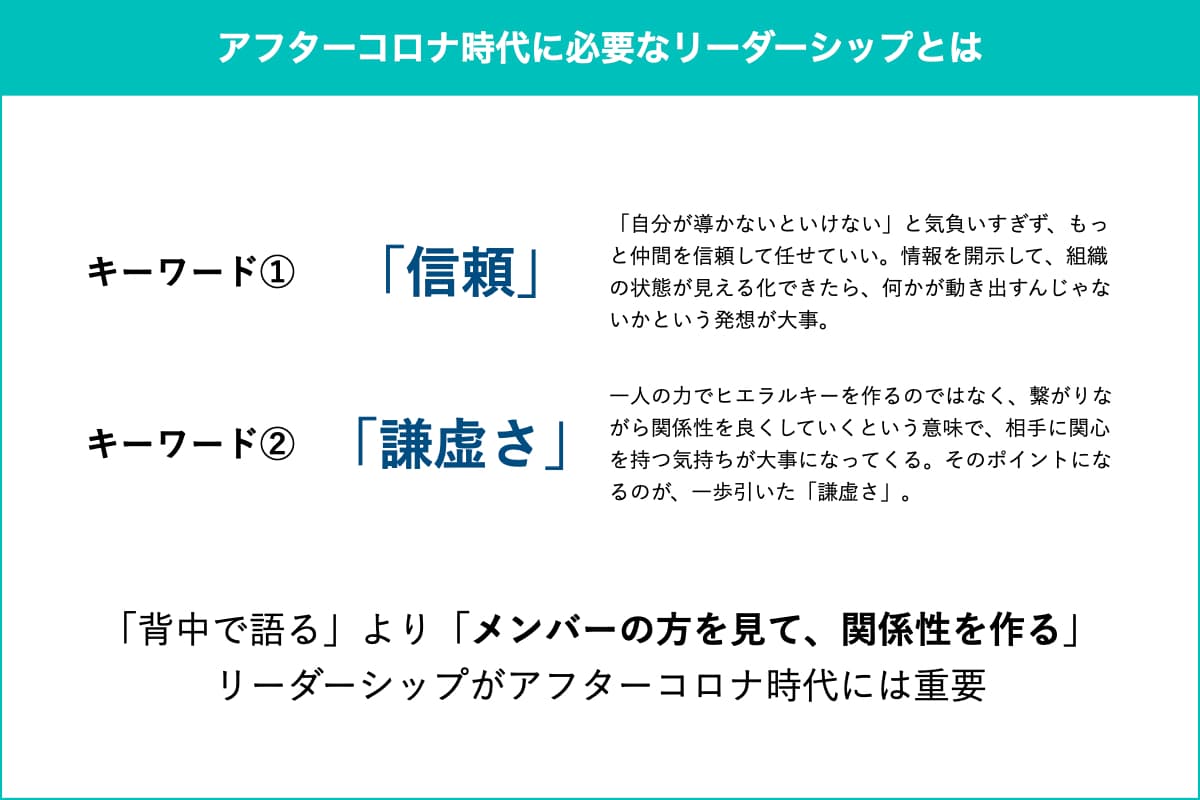 ―アフターコロナの時代におけるリーダーシップのキーワードがあるとするなら、どんなものだと思いますか?