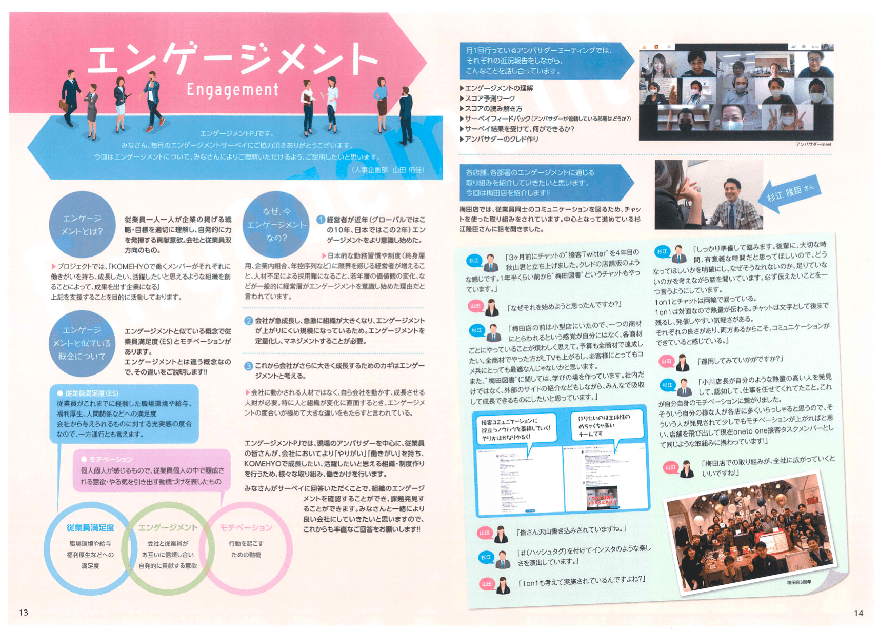 社内報でエンゲージメントについて情報発信。メンバーによる事例紹介も