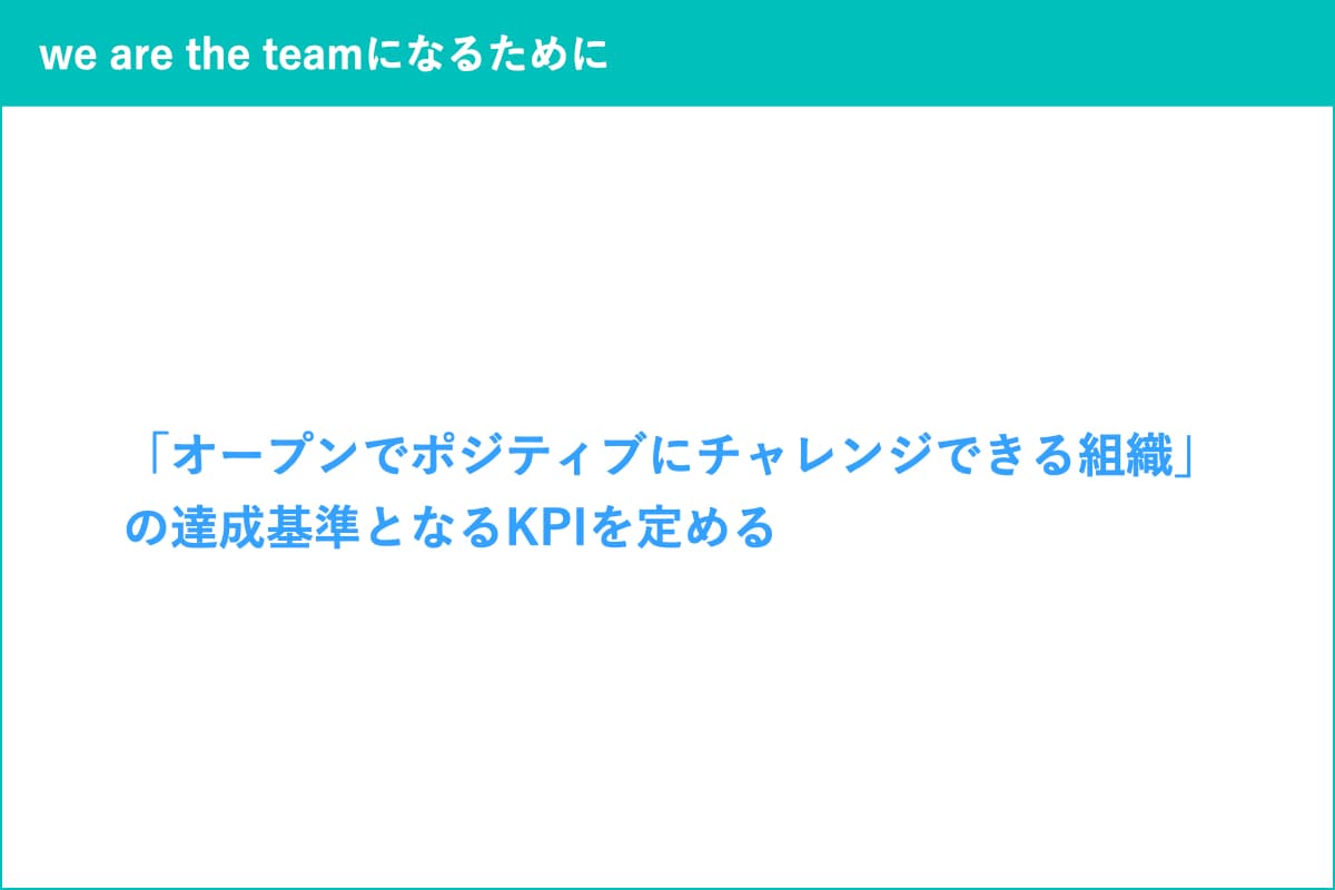 we are the teamになるために: 理想の組織の達成基準を設け、KPIを設定していきたい