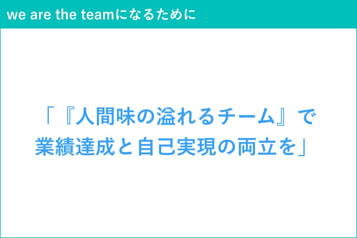 【we are the teamになるために】「人間味の溢れるチーム」で業績達成と自己実現の両立を