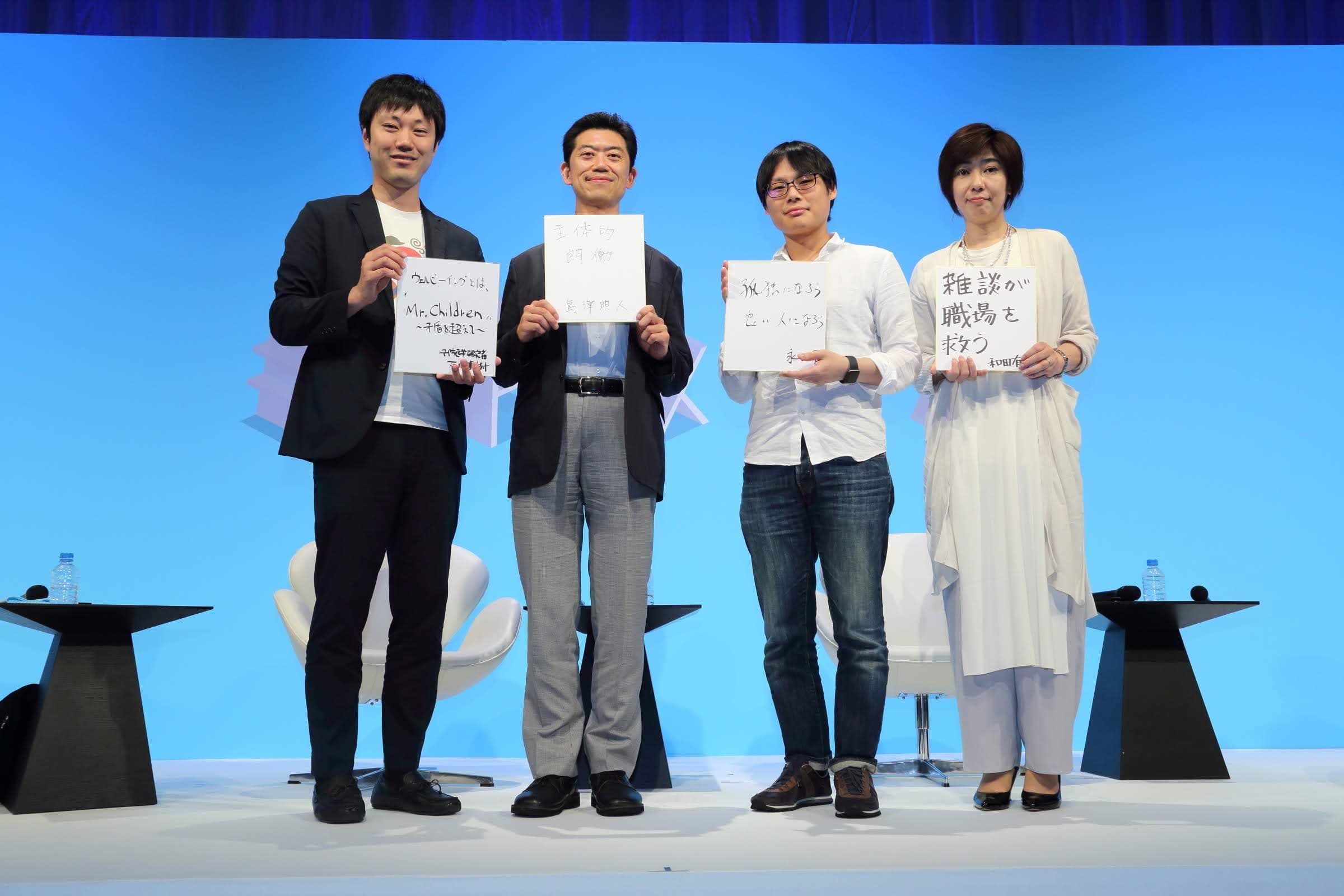 ウェルビーイングな働き方をするには、矛盾を乗り越えないといけないと思いました。「健康とパフォーマンス」、「孤独とチーム」、「独立心といい人」など、一見すると矛盾する2つの価値観を乗り越えていく。これすればいいという正解よりも、矛盾を一つひとつ乗り越えていくことなのかなと思ったのでMr.Childrenで表現しました(笑)。ミスターなのにチルドレンみたいな。矛盾を超える歌が多いんですよ、Mr.Childrenって。だから僕は今日からもっとミスチルを聞こうかなと思います(笑)。