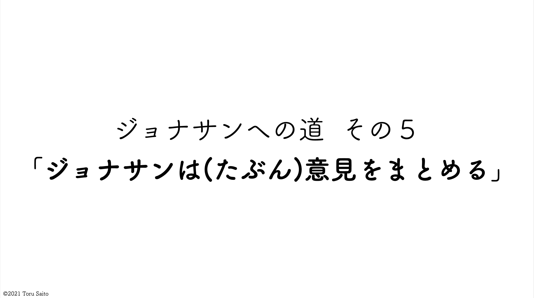 2つ目は「ジョナサンはやさしい」です。今日の私の話は基本的に、組織全体を変えるためには、まず自分から変えることが一番大切ということが根底にあります。だから皆さんは強がりの仮面を外しているか、いい人の仮面を外しているか、そういう風に聞いてもらえれば嬉しいです。