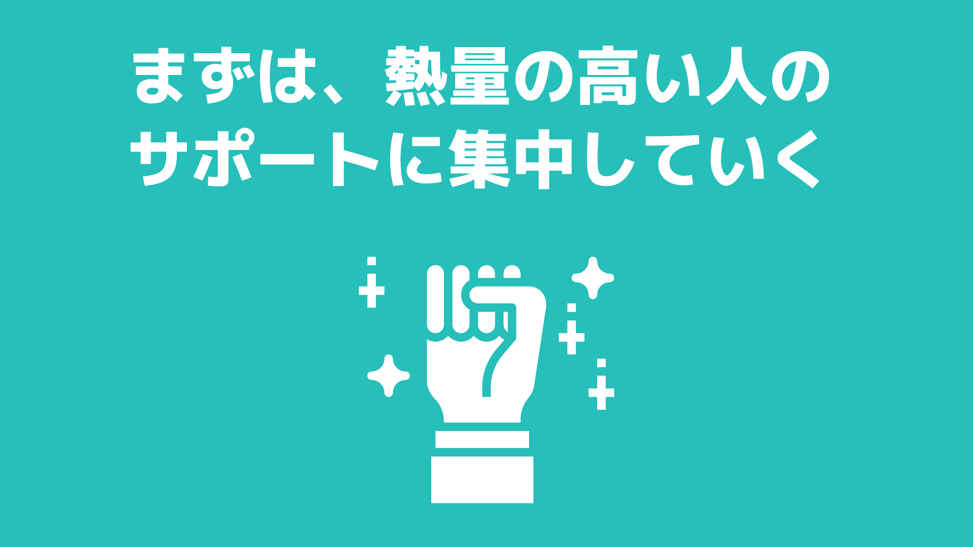 その20%の人たちをしっかりとサポートして、組織が変わっていくようにしていくこと。他の熱量の低い人たちはいったん優先度を下げてでもいいので、まずは熱量の高い人に集中して取り組むことをオススメします。