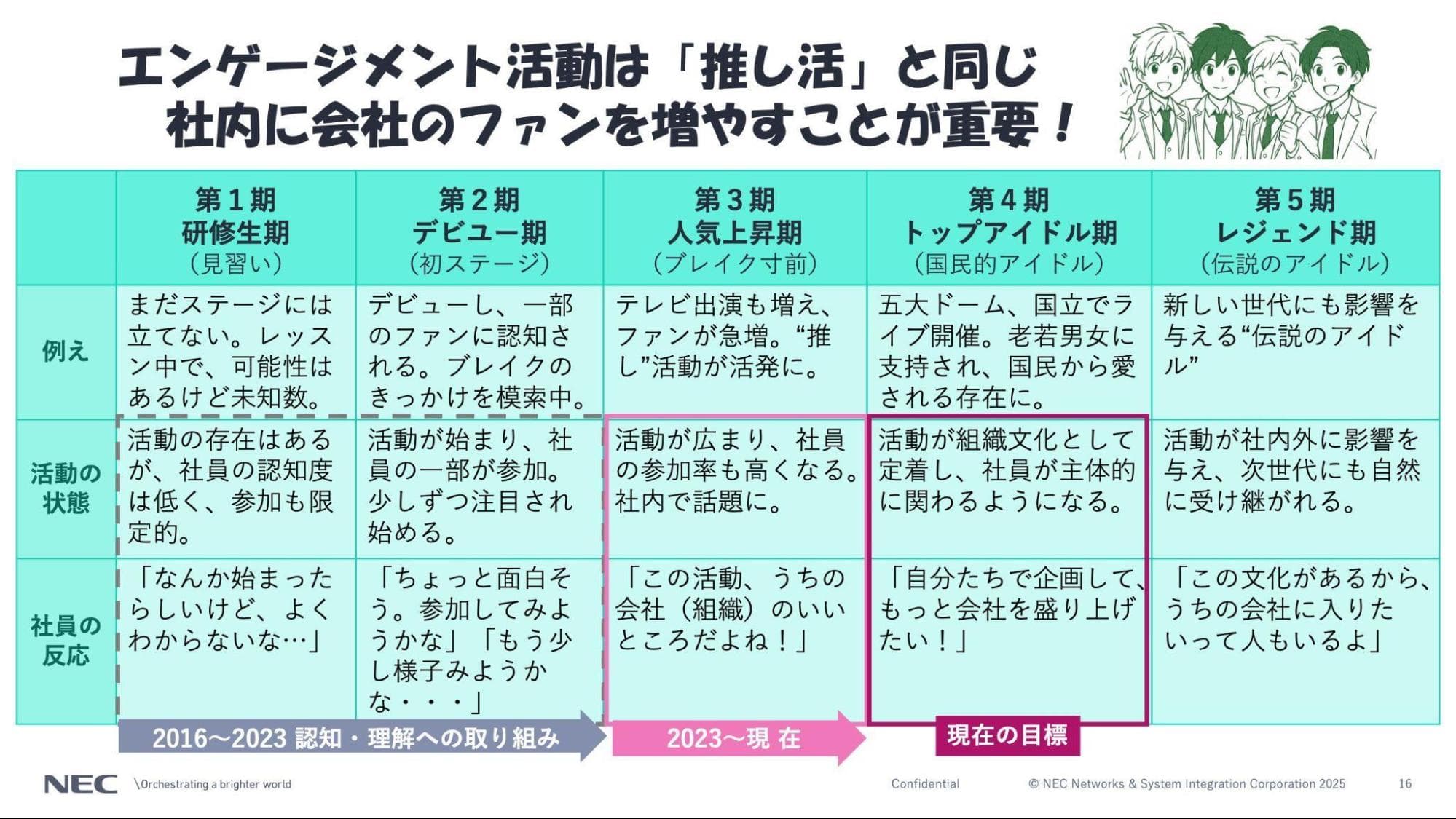 そこで今回は、アイドルの成長と「推し活」を重ねながら、当社のエンゲージメント活動の変遷をご紹介します。