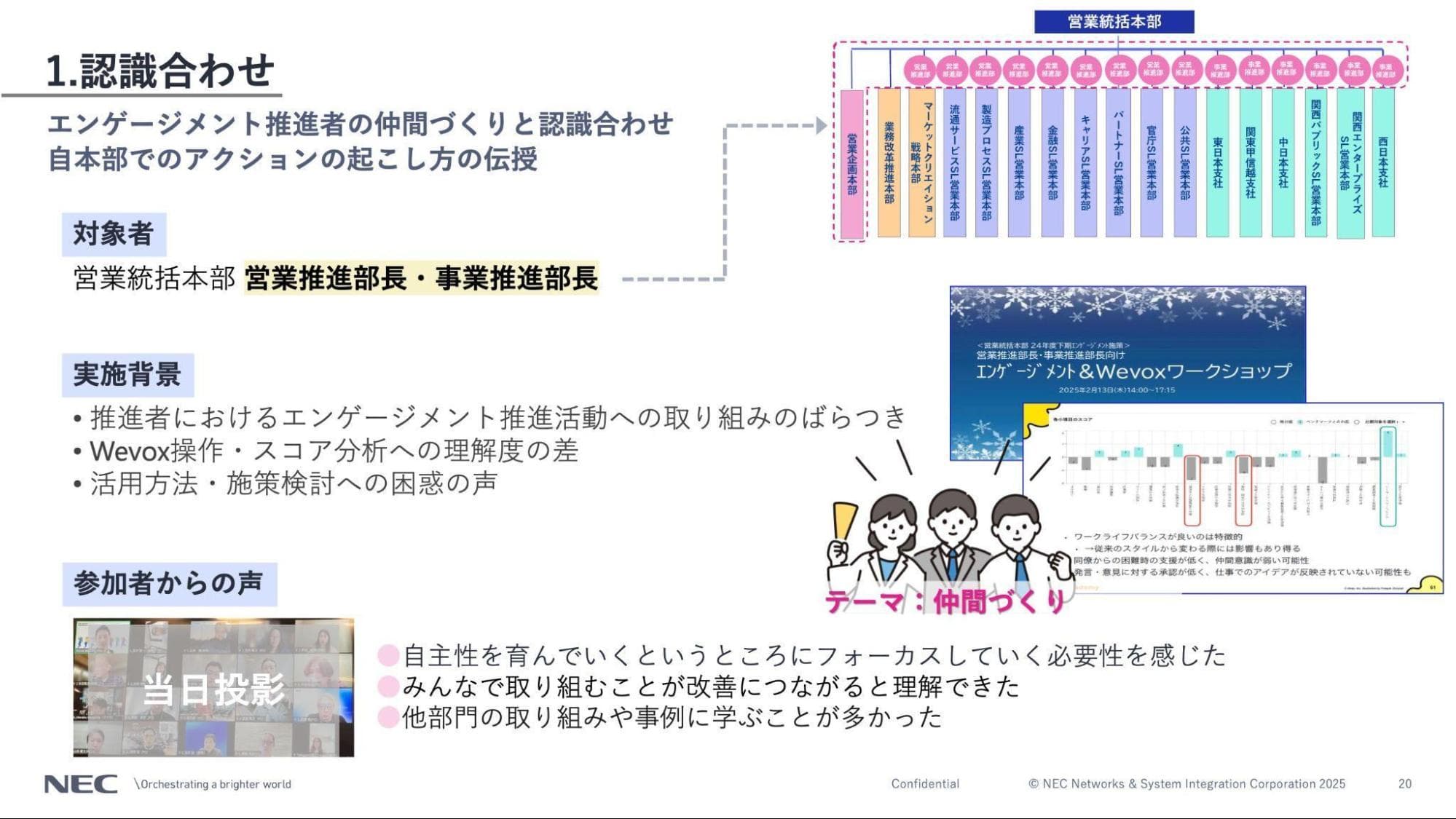 江藤: 次にターゲットにしたのが、各本部でエンゲージメントを推進する担当者(営業推進部長・事業推進部長)です。