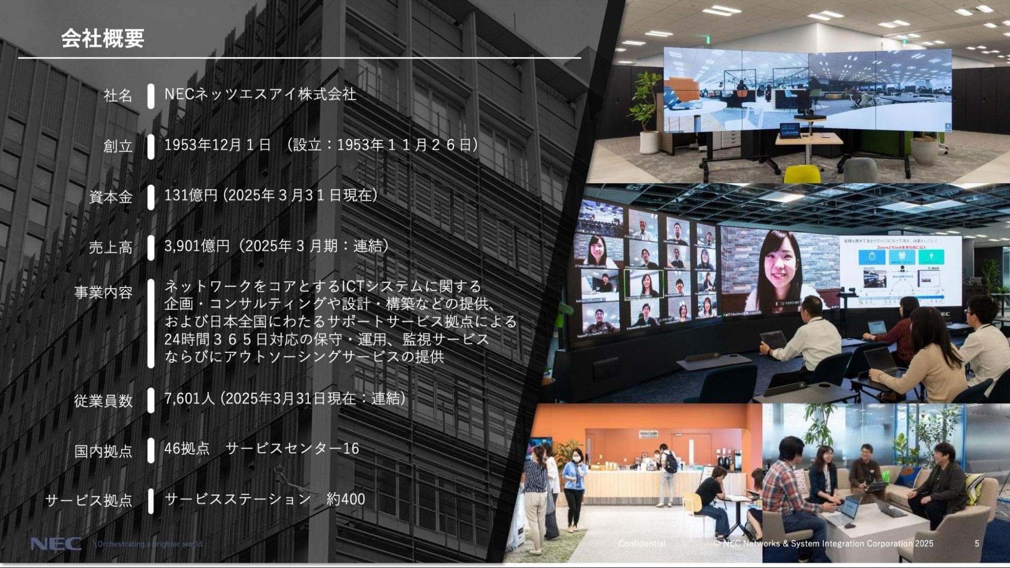 私たちNECネッツエスアイは、1953年に創立し、今年で72年目を迎える会社です。通信工事会社として設立されて以来、通信インフラの構築や保守、運用を手がけてまいりました。現在ではICTを活用した様々なシステムやサービスをお客様に提供しています。