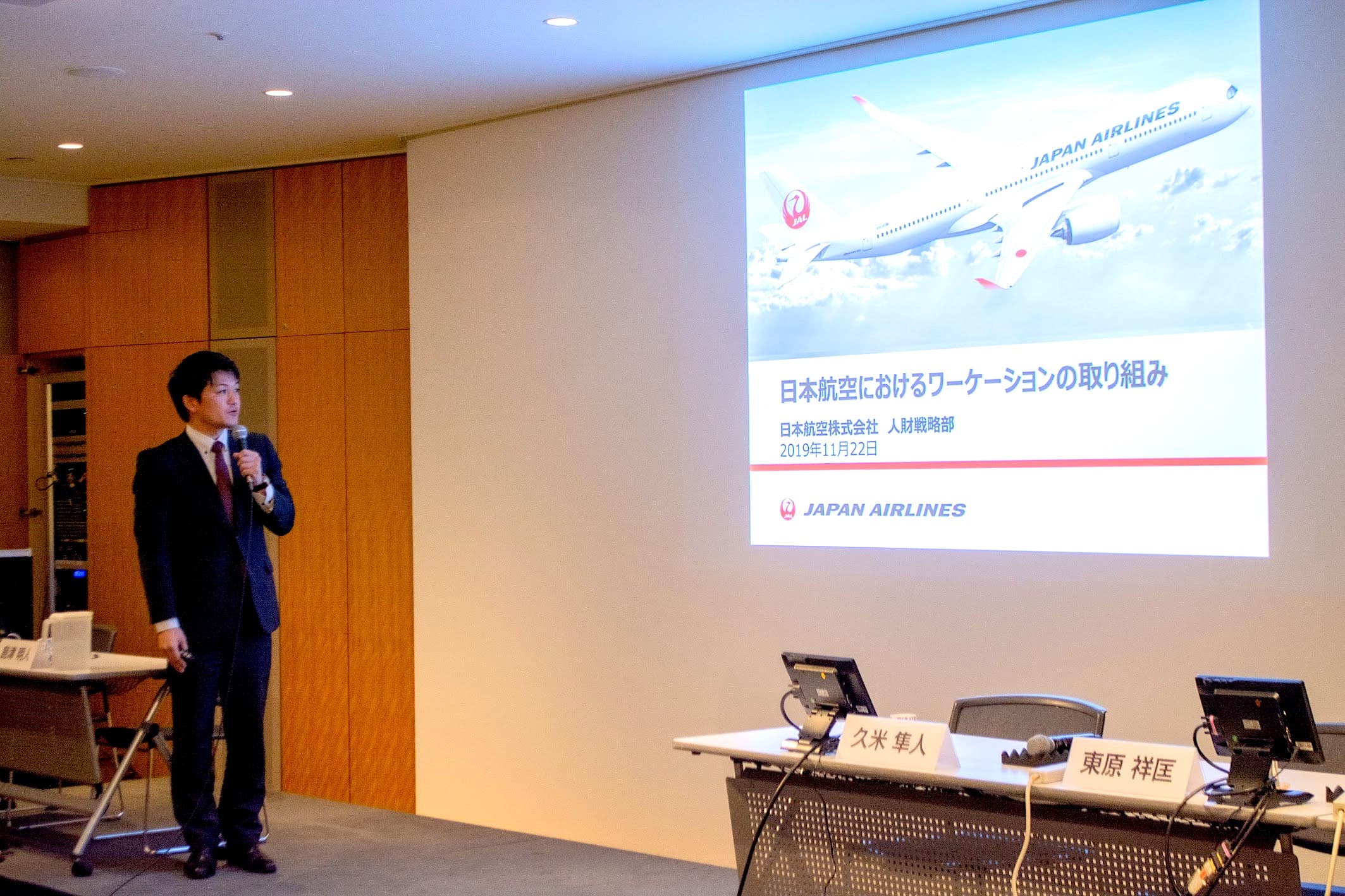 こんにちは。日本航空(以下、JAL)の東原です。私からは、「日本航空におけるワーケーションの取り組み」という題目でお話しします。最初に、軽く自己紹介を。私は今の会社に13年間勤め、人財戦略部という人事の部署に所属しております。ワーケーションなどの人事制度を作って、社員の理解促進、そして会社全体への浸透を担当しています。また、意識改革に加え、勤怠などの労務管理も行なっています。