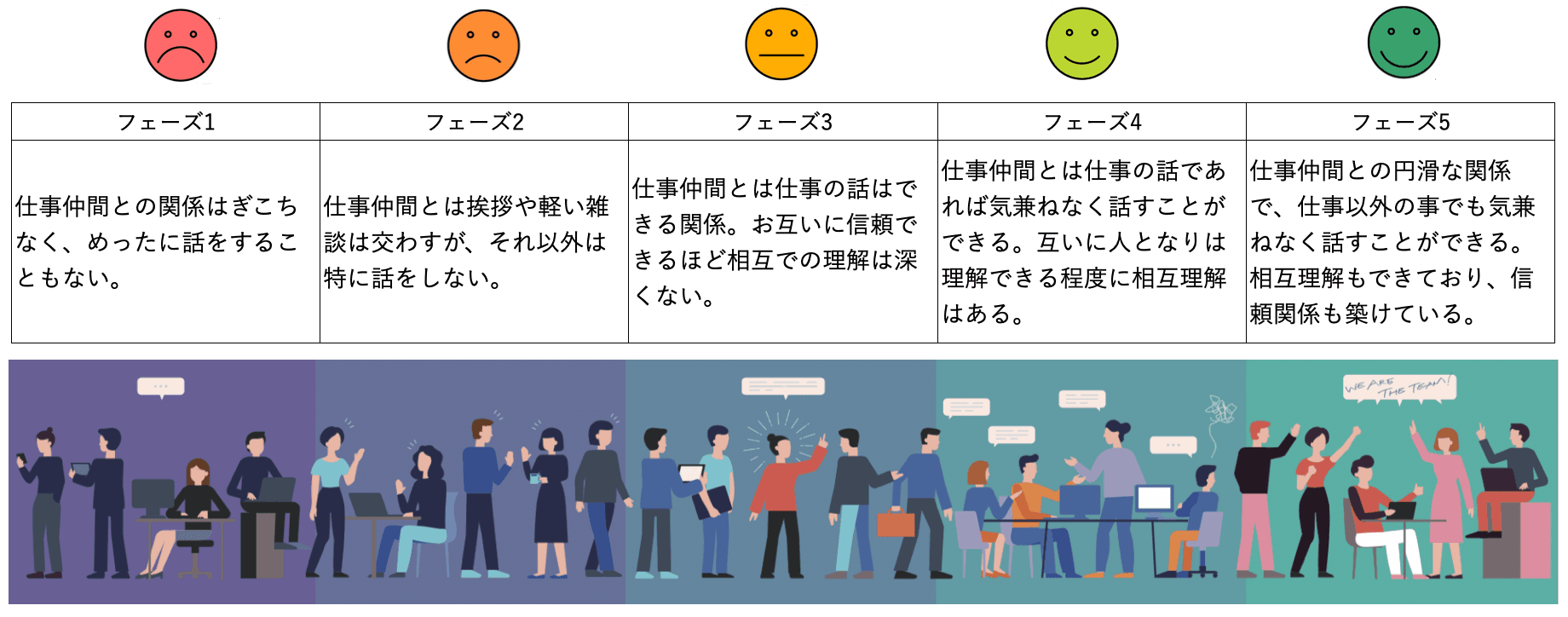 仕事仲間との関係の5つのフェーズ