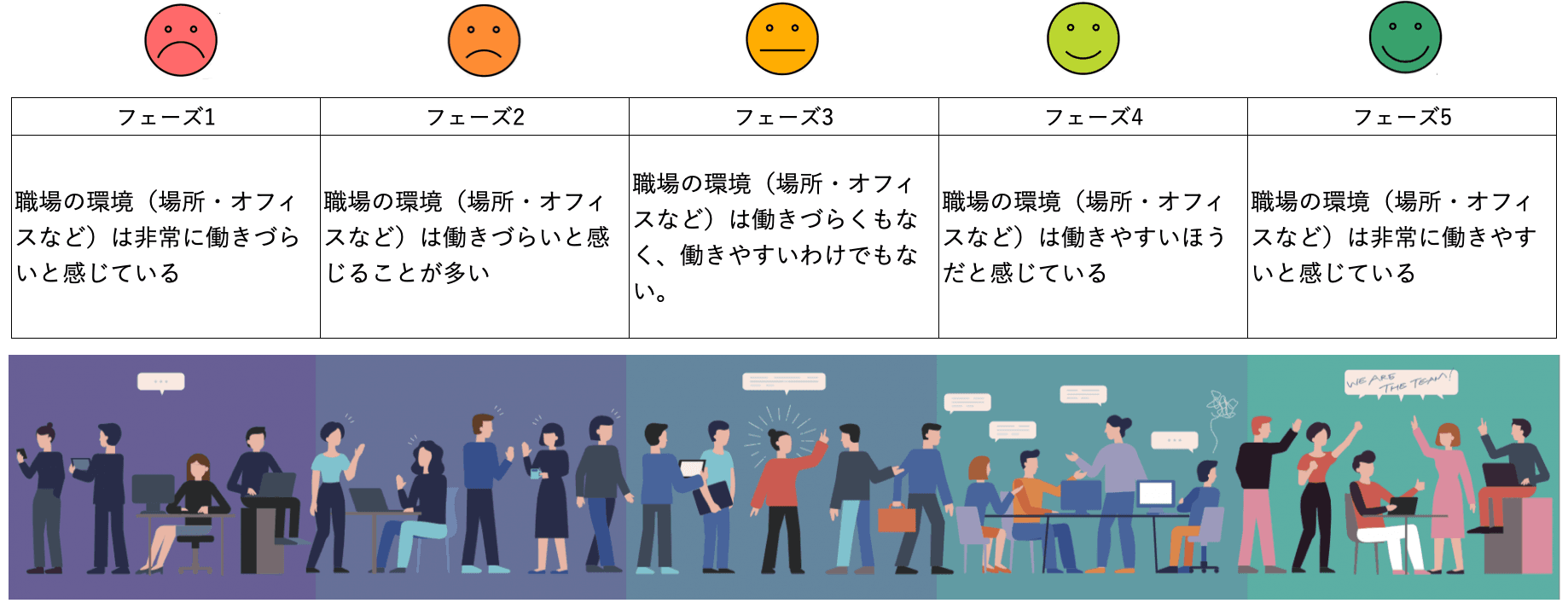 メンバーにとって職場の環境(場所・オフィスなど)は働きやすいかどうかを確認する項目です。物理的なオフィスに限らず、テレワーク時の環境など働く上での職場全般を指します。