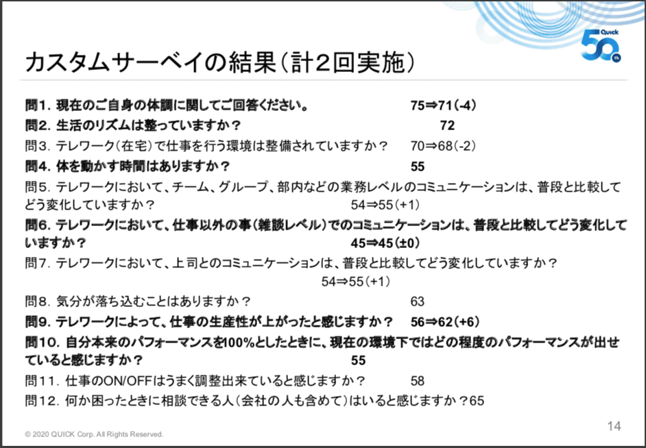テレワークのポジディブ・ネガティヴの両面を把握できたカスタムサーベイ